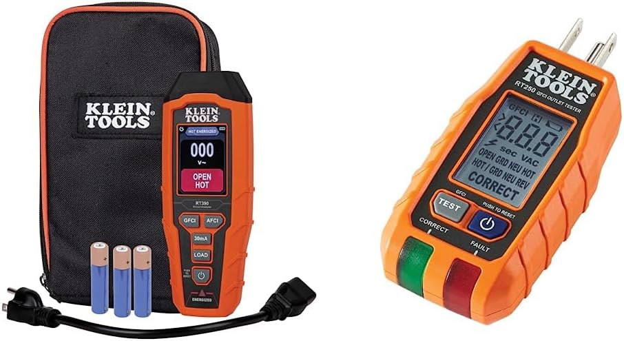 Klein Tools RT390 Circuit Analyzer with Large LCD, Identifies Wiring Faults, GFCI and AFCI Tester, Voltage Drop, Displays Trip Time,OrangeThe Klein Tools RT390 is a Circuit Analyzer that tests the wiring conditions at an electrical outlet, displays AC line voltage, inspects AFCI and GFCI devices with time to trip device, and performs voltage drop tests at 12A, 15A and 20A current loads. Results are easy to understand with large, color LCD. The tester is designed for use with North American 120V AC 3-wire electrical outlets. For more than 160 years, Klein Tools has manufactured premium-quality, professional-grade hand tools that deliver the performance, durability and precision needed to get the job done right. Our family of engineers, workers and craftsman continue to put six generations of expertise into every tool we create by using only the highest quality materials, superior workmanship, and keeping manufacturing as close to home as we can. Klein isn't just the name of our company, it's also our family name. And since we're an American company that's family-owned and family-run, you know you can count on us to be here tomorrow. Klein Tools doesn't just make great products, we make great products that stand up to the demands of the professionals who use them every day ... Since 1857.Klein Tools 69411 Circuit Breaker Finder Accessory Kit, Circuit Breaker Leads, Circuit Breaker AdaptersThe Klein Tools circuit breaker kit allows your circuit breaker finder to do more than just indicate standard circuits. Adapters in this kit indicate the correct breaker of bare wires or other exposed conductors. Adapters also indicate the correct breaker for light fixtures. For more than 160 years, Klein Tools has manufactured premium-quality, professional-grade hand tools that deliver the performance, durability and precision needed to get the job done right. Our family of engineers, workers and craftsman continue to put six generations of expertise into every tool we create by using only the highest quality materials, superior workmanship, and keeping manufacturing as close to home as we can. Klein isn't just the name of our company, it's also our family name. And since we're an American company that's family-owned and family-run, you know you can count on us to be here tomorrow. Klein Tools doesn't just make great products, we make great products that stand up to the demands of the professionals who use them every day ... Since 1857.