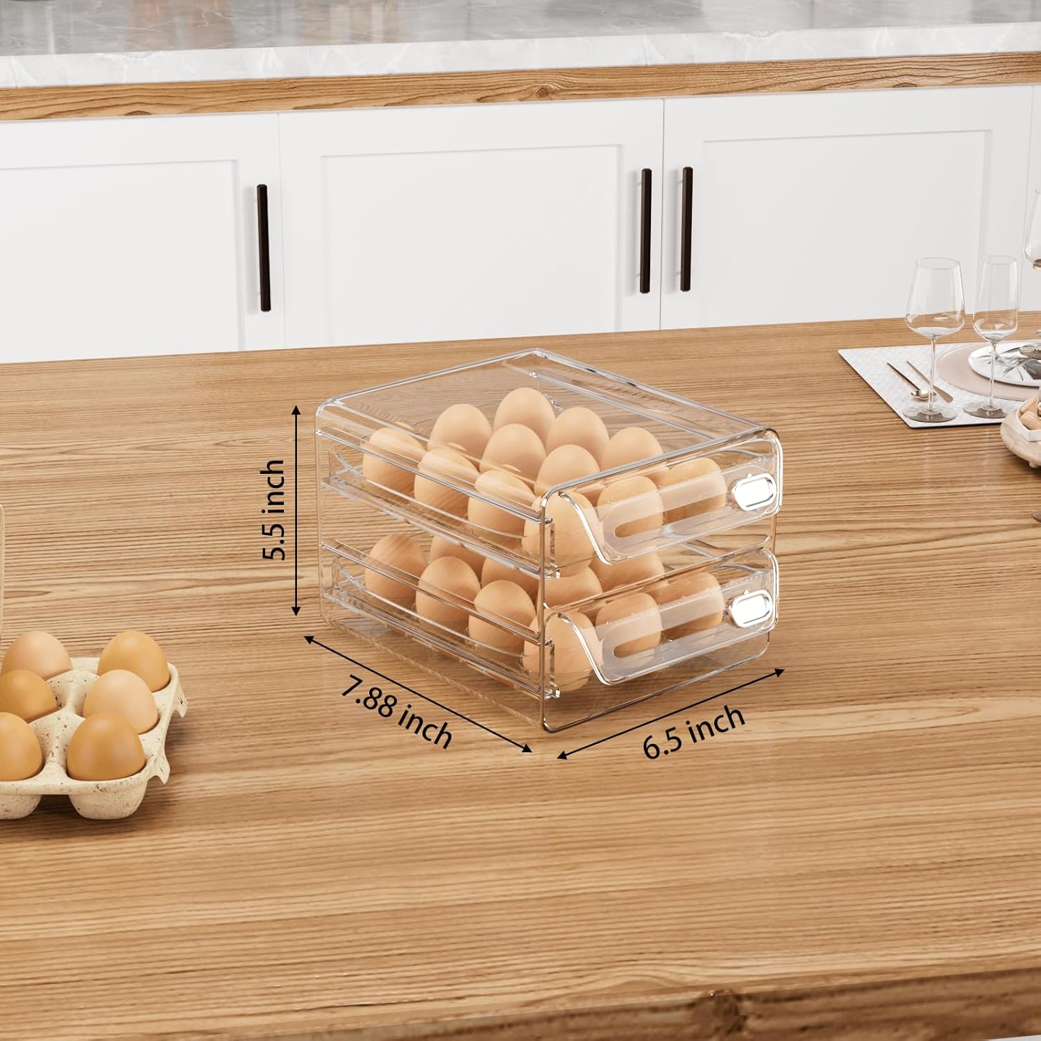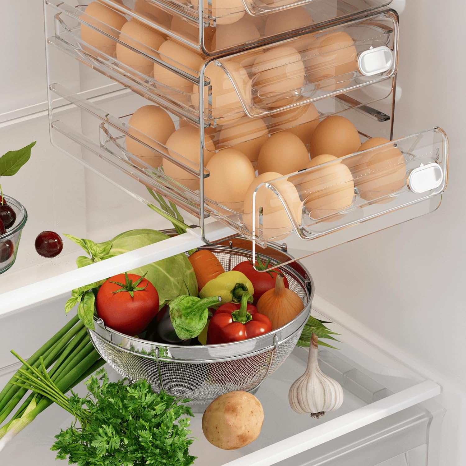 Keep Your Eggs Fresh and Always Be Able to See How Many Eggs Are Left – Easy-to-Access Egg Containers Egg Container for Refrigerator Stackable Egg Container Egg Container for Refrigerator Clear & Transparent Egg Container This egg container for refrigerator, featuring a convenient handle design, offers effortless egg access. The pull-out egg drawer can be fully extended, simplifying cleaning and maintenance for added convenience. Upgrade your egg storage with ease. Stackable & Large capacity Egg Holder This sturdy egg storage box for refrigerator is stackable, making it an excellent space-saving solution for your fridge. It keeps your eggs organized, preventing mess and chaos. Time Recording Egg Container This refrigerator egg drawer features an innovative time rail design, allowing you to customize freshness durations and prevent egg expiration. With deeper grooves and reinforced durability.