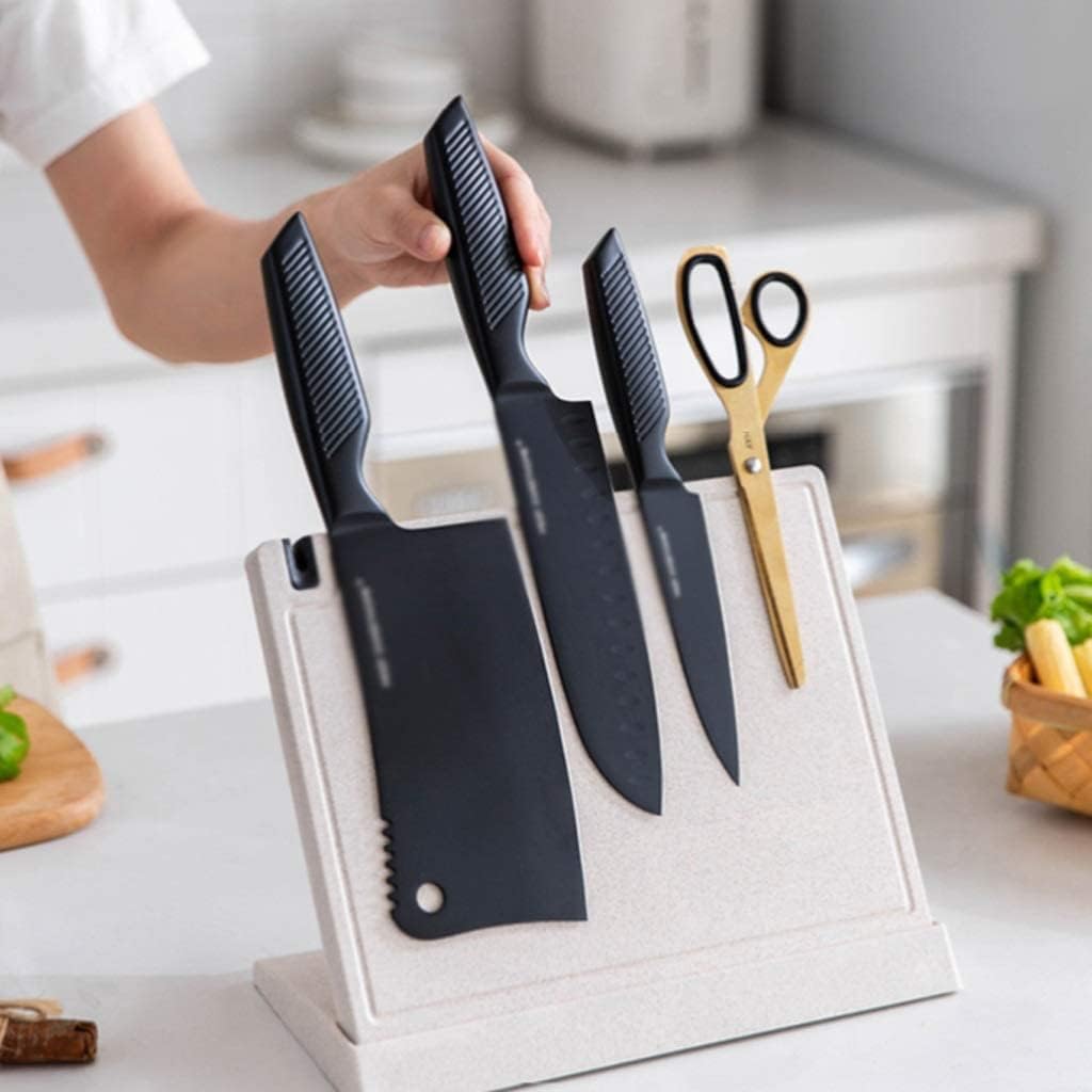 Reducing friction with the placed tool, which can protect the tool, extending the lifespan of your knives; helping to keep your kitchen organized. Description: Product name: Knife Block / Knife Rack / Knife / Knife Stand Material: wheat straw +TPR Size: Pls see size picture for details Suitable Place: Home, Bar, Canteen, Restaurant, Kitchen, etc Package Included: 1 X Knife Block( Knife Not included)