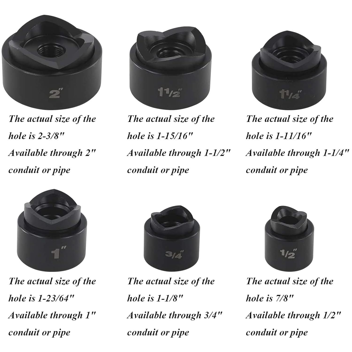 Specification: Item Type:Hydraulic Knockout Punch Driver Kit Application Range:22.5~61.5mm Tonnage:69KN Plate Thickness:3.5mm Stroke:22mm Equipped Punch Die:22.5mm,28.3mm,34.6mm,43.2mm ,49.6mm,61.5mm Weight: 3.2KG Package List: 1 x Hydraulic Pump 6 x Die 2 x Piston Rod 1 x Washer