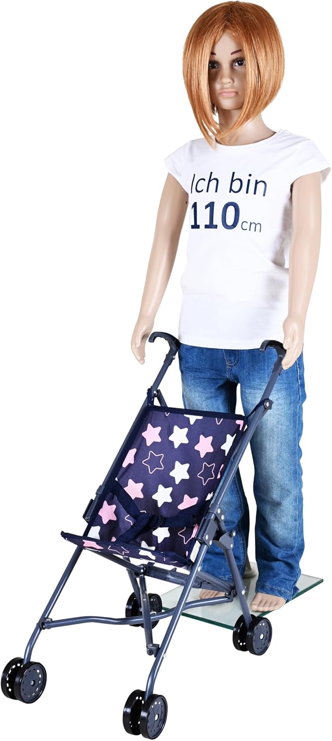 Top modern and practical doll buggy "Sim" by knorrtoys with seat belt and inward turned handle. Easy, space-saving folding, slider height 55 cm. Dimensions: approx. 42 x 27 x 55 cm. Suitable for dolls up to a size of approx. 37 cm.