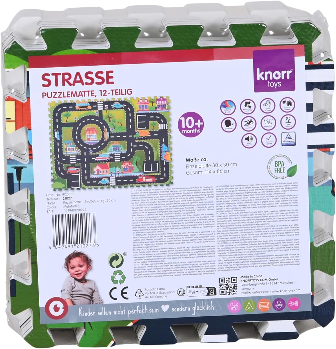 Once like mum and dad drive to work or just buy something quickly? Which child does not like to play everyday life. Shortly jumped into the car and drove off. With this street rug, there are no limits to your imagination. These puzzle mats offer a perfect alternative to conventional play mats. The height of about one centimeter provides nice soft heat regulation. The mats are super practical washable and non-slip and thanks to the puzzle system perfect for taking with you. Dimensions when assembled: approx. 114 x 86 cm, each single mat measures approx. 30 x 30 x 1 cm. Suitable for indoor and outdoor use.