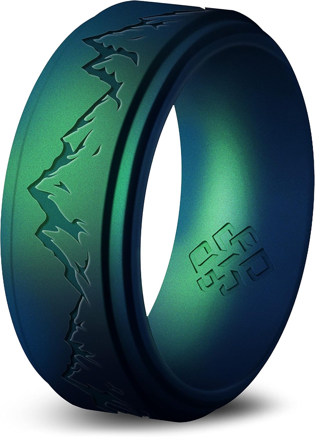 Knot Theory Silicone Rings - Flexible Silicone Band for Sports Activities WHAT MAKES US DIFFERENT: - Comfortable 24/7 - Enhanced breathability and comfort with a curved inner wall - Looks Great on Your Hand - Thoughtful designs; no finger muffin-tops thanks to the ergonomic design - Not too thin or too thick - Best-of-both-worlds thickness & flexibility for durability and comfort - High Quality - Made with high quality food-grade silicone and pigments - Safe for All Activities - No pinching, no calluses. Non-toxic, non-conductive, and heat-resistant OUR ENGRAVING: - 360° engraving available on both inside & outside of the ring - Each ring is engraved by a passionate team in Canada SIZING - Please see the product images for a ring size guide - HELPFUL SIZING TIPS: 1. If you are between sizes, for example size 9.5, we recommend going for size 9. 2. A silicone ring is flexible and can stretch over your knuckles. So quite often it is 1 size smaller than your current metal ring. Here is an approximate guide: Women: Size 4: XS Size 5: S Size 6 & 7: M Size 9: L Men: Size 7: XS Size 8: S Size 9 & 10: M Size 12: L