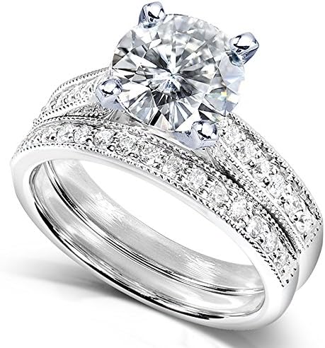 Round Moissanite & Diamond Bridal Set 2 1/3 Carat (ctw) in 14k White Gold