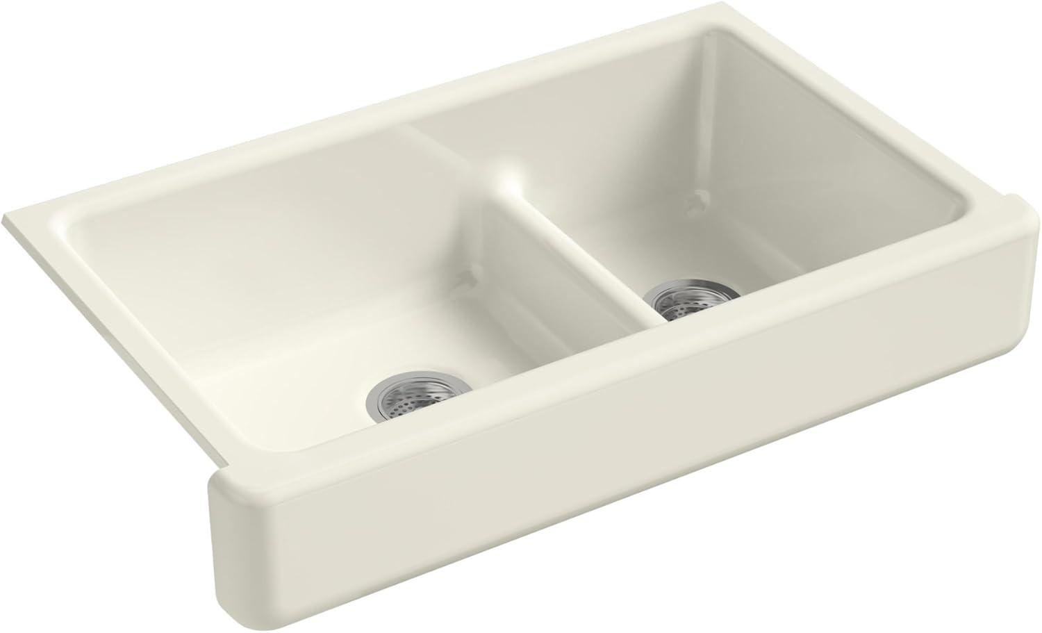 Product Description The Whitehaven apron-front kitchen sink features a streamlined and versatile farmhouse style to complement any decor. Perfect for remodeling projects, it has a shortened apron that allows for installation on most new or existing 36-Inch standard cabinetry. The Self-Trimming design requires only a simple rough cut, overlapping the cabinet face for beautiful results and easy installation. A low barrier divides the two compartments, making it easy to wash and rinse large items while still keeping the two basins separate. Crafted from enameled cast iron, this sink resists scratching, burning, and staining for years of beauty and reliable performance. From the Manufacturer The Whitehaven apron-front kitchen sink features a streamlined and versatile farmhouse style to complement any decor. Perfect for remodeling projects, it has a shortened apron that allows for installation on most new or existing 36-Inch standard cabinetry. The Self-Trimming design requires only a simple rough cut, overlapping the cabinet face for beautiful results and easy installation. A low barrier divides the two compartments, making it easy to wash and rinse large items while still keeping the two basins separate. Crafted from enameled cast iron, this sink resists scratching, burning, and staining for years of beauty and reliable performance.