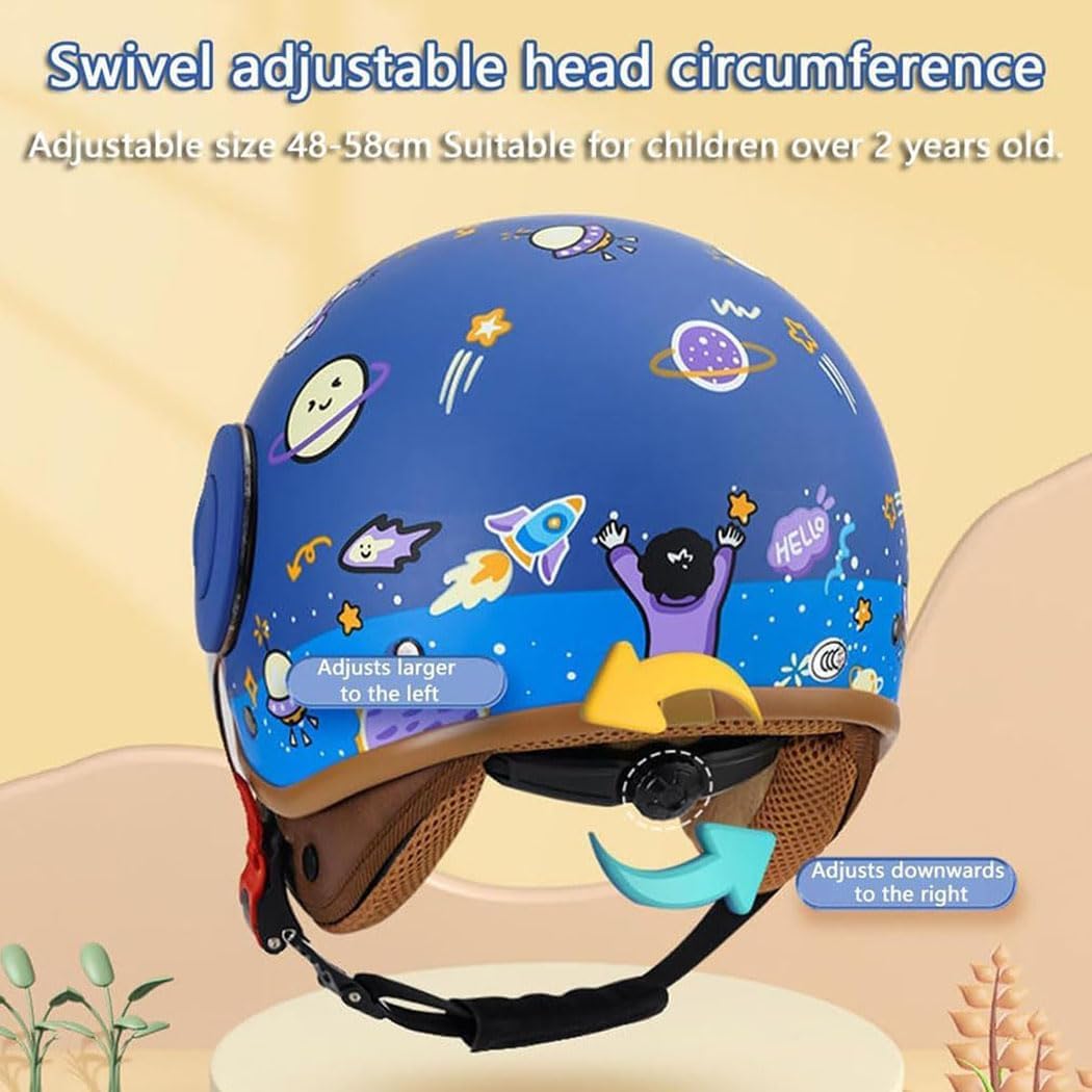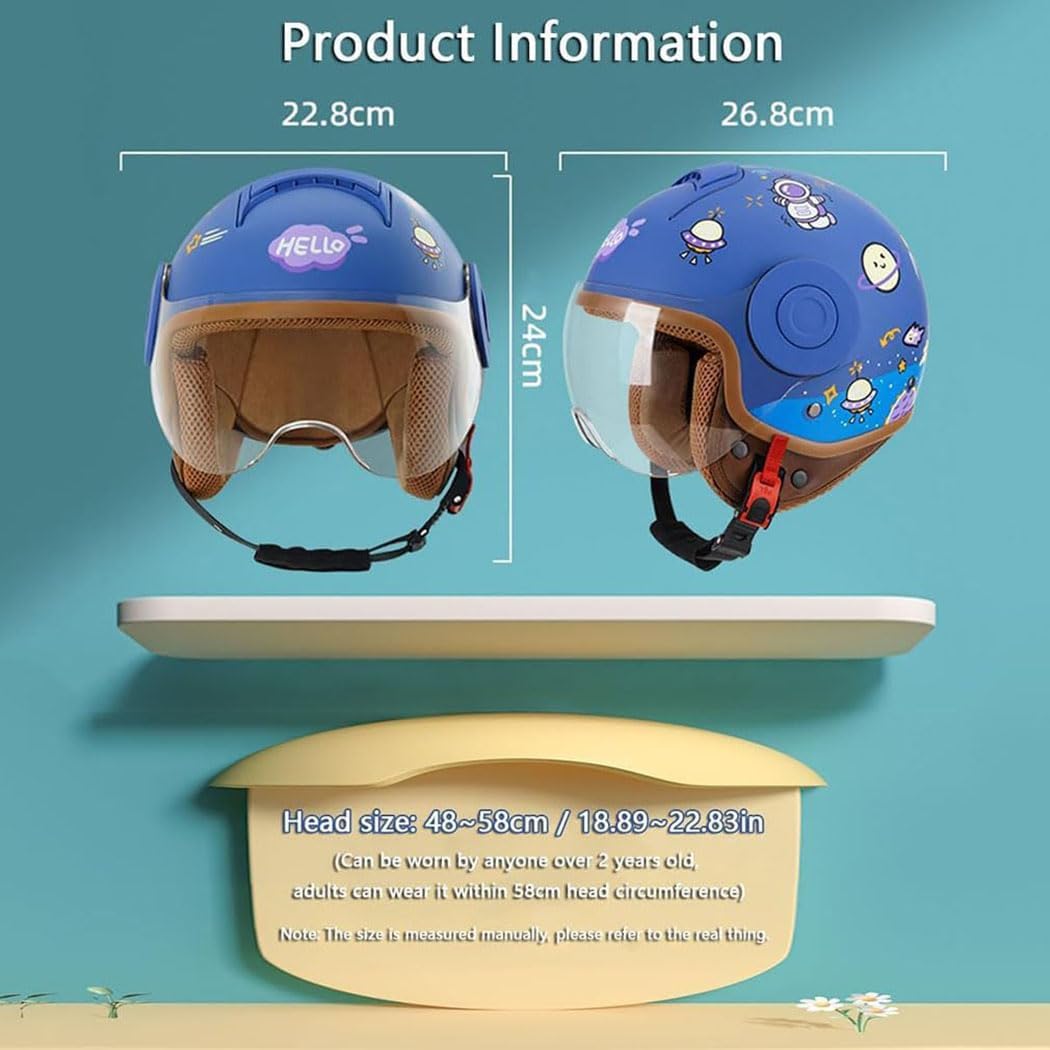 ★ I don't know when, life has the same importance with me, she supports my faith and my dream, and has the same hobby of a group of steel engines, yes. We all love motorcycles because they symbolize independence, freedom, courage and perseverance. Guys, I'm ready. How about you! Ready to start!★Product Description: Product name: 3/4 Kids Half HelmetsMaterial: ABSProduct weight: 800g50gProduct size: Free size 4858cm/18.89-22.83inProduct types: child motorcycle helmets, youth electric bicycle helmetsApplicable season: all seasonsApplicable people: adults, teenagers, boys, girlsScope of application: motorcycle/bicycle/go-kart/dirt-bike/electric car/scooter/flying/skiing/skating and other safety protection.★Package list: 1*Kids Motorcycle Helmet★If you have any questions, please send us an email, our customer service team will reply you within 24 hours and provide you with the best solution.