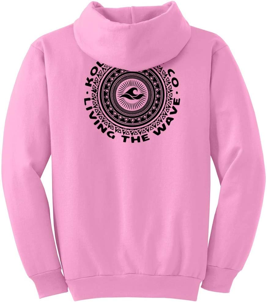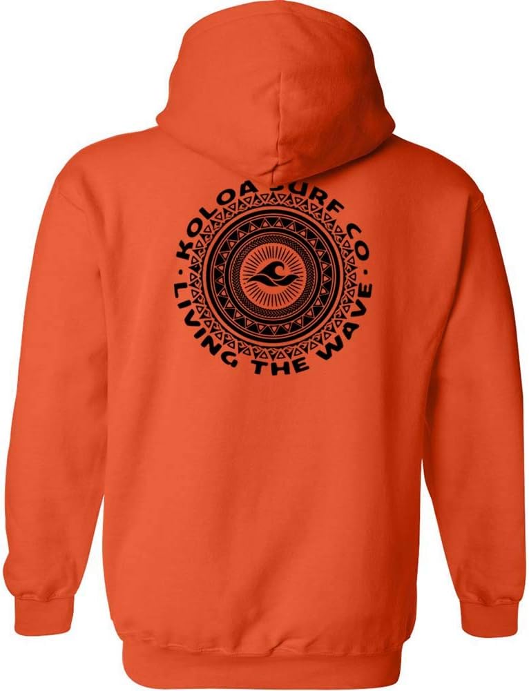 • Koloa Surf Mens Tribal Circle Logo Pullover Hoodie. Tribal Circle on back of hoodie and small Koloa Classic Wave on front.