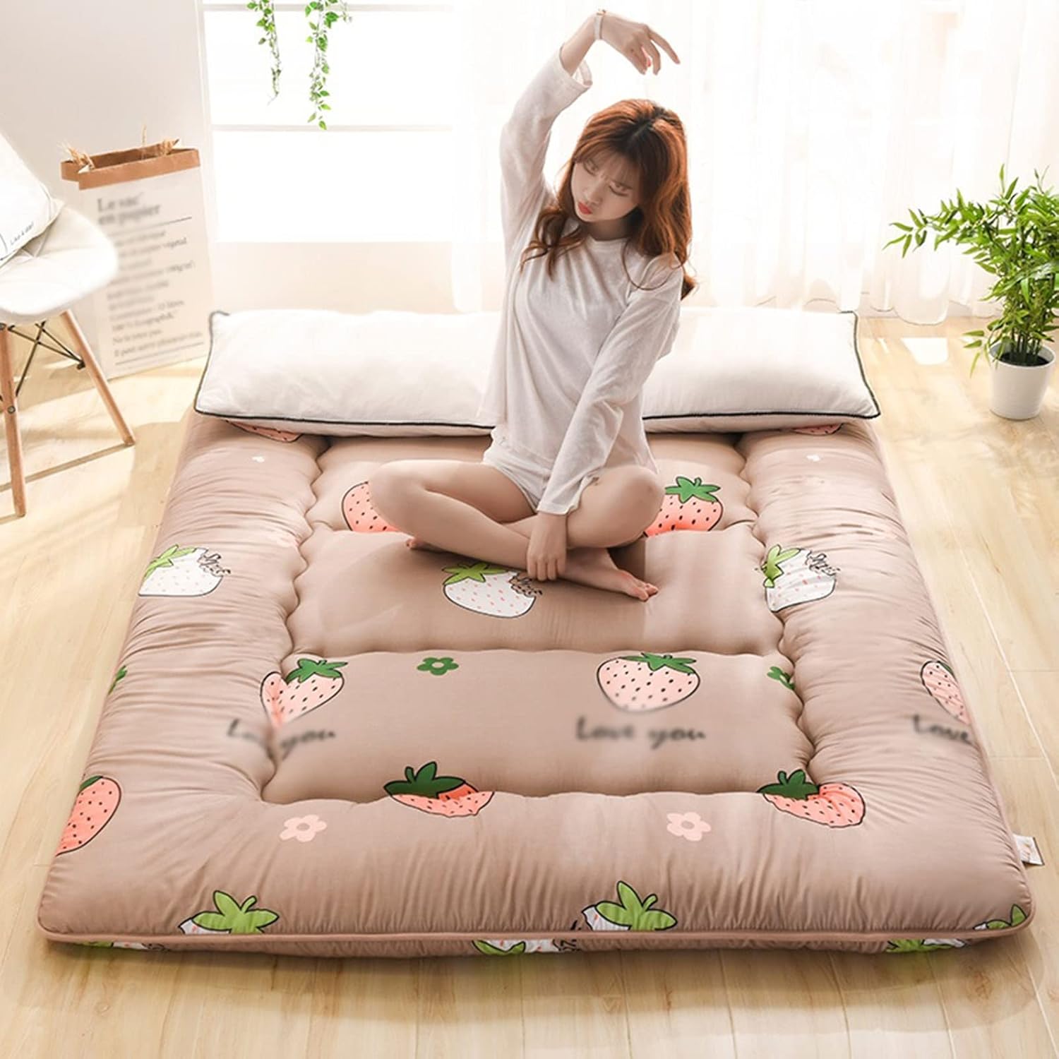 We offer a variety of sizes to choose from. These sizes include beds in various sizes, including dormitories, where you can choose the size and size.The mattress is comfortable, soft and not easily deformed; It is foldable to be storedLight weight, Easy to storage. All items are able to be folded up to keep in closet and rolled out right on the floor to sleep on.Filler:PolyesterFabrics:PolyesterSuitable: suitable for all seasons1. Futon Mattress Is Ergonomically Designed To Distribute Your Weight Evenly,Reducing The Pressure On Shoulders,Hips And Feet,While At The Same Time Shaping Your Body Perfectly.2.our Tatami Futon Mattress Is Soft And Breathable,Super Comfortable.it Can Be Folded In The Closet And Then Placed On The Floor To Sleep.3.environmental Protection Material Care For Spine To Provide You With Quality Sleep.4.The Matress Is Not Easily deformed; It Is Foldable To Be Stored5.Applicable scene: dormitory, family, hotelPrecautions:1.our Products Use Vacuum Compression.after The Product Is Handed,There Is A Rebound Process That Takes About 3 To 5 Days.after Using For A Period Of Time,It Is Recommended To Put The Mattress Under The Sun To Restore The Thickness Of The Mattress And Extend The Use Time.2.please Allow 1-2cm Differences Due To Manual Measurement.