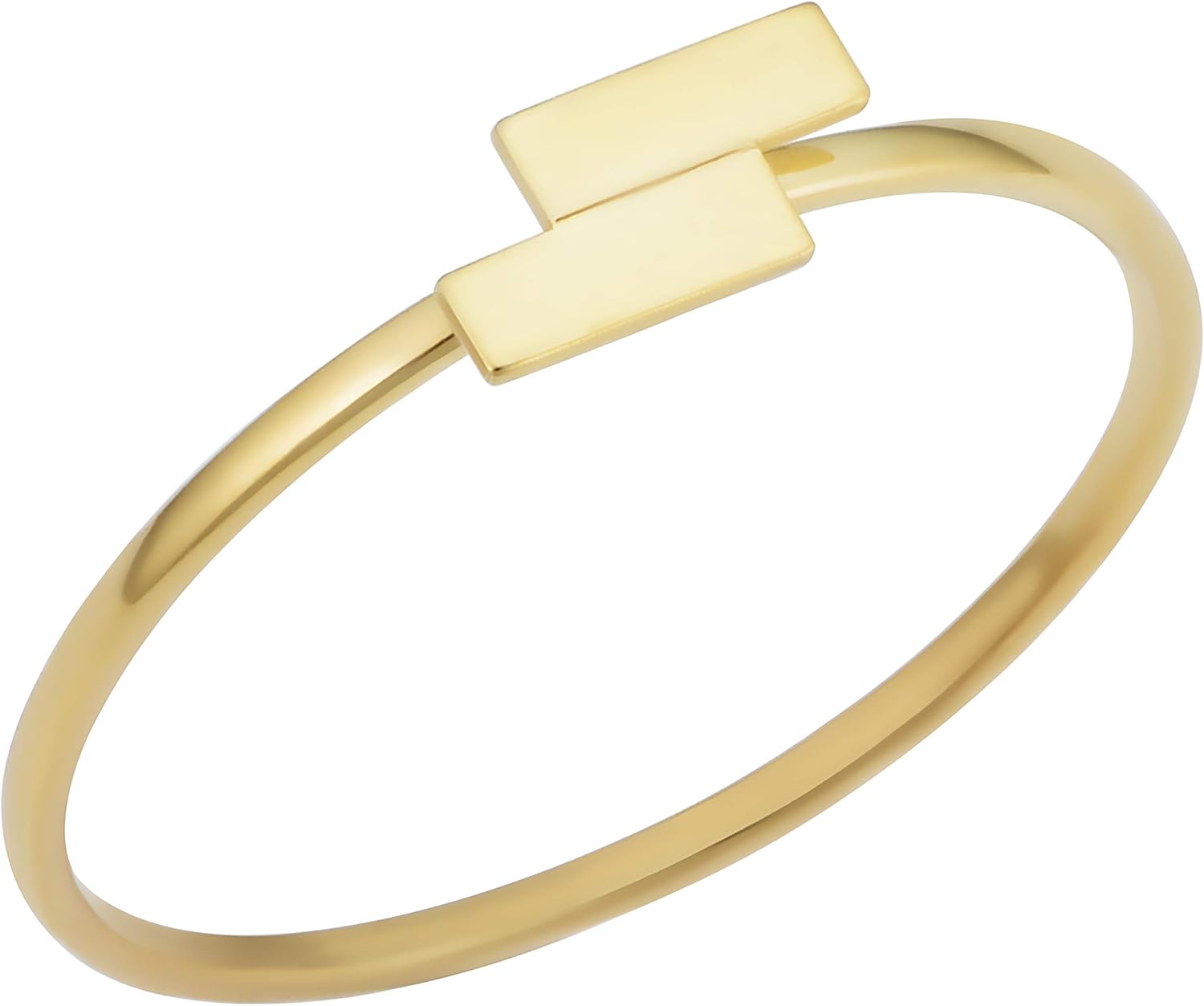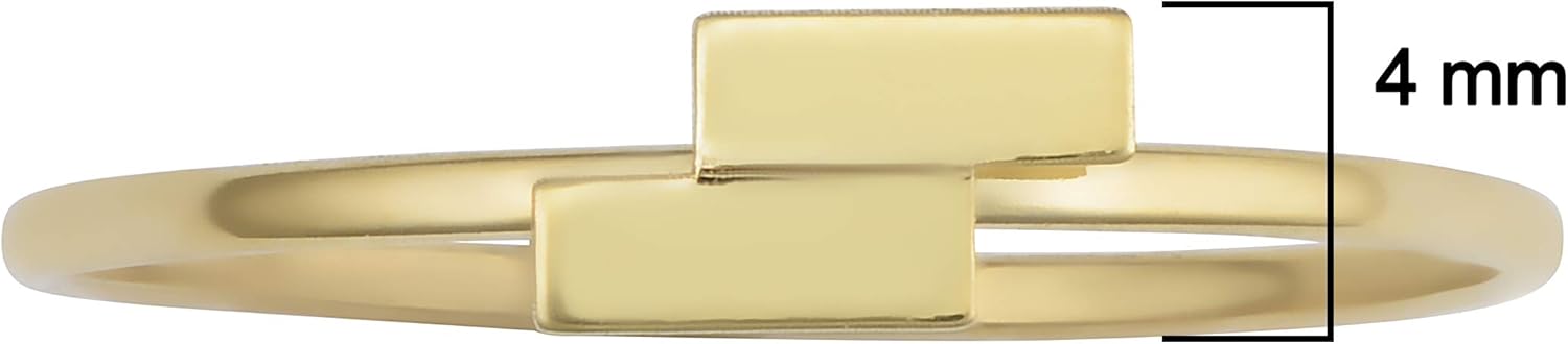 This beautiful gold ring is made in Italy of genuine 14k yellow gold and it features the radiance of high polish finish. This minimalist gold ring for women showcases a simple double bar design. This gold ring will complement casual attire and will look great paired with other gold jewelry such as gold earrings, bracelet and necklace.