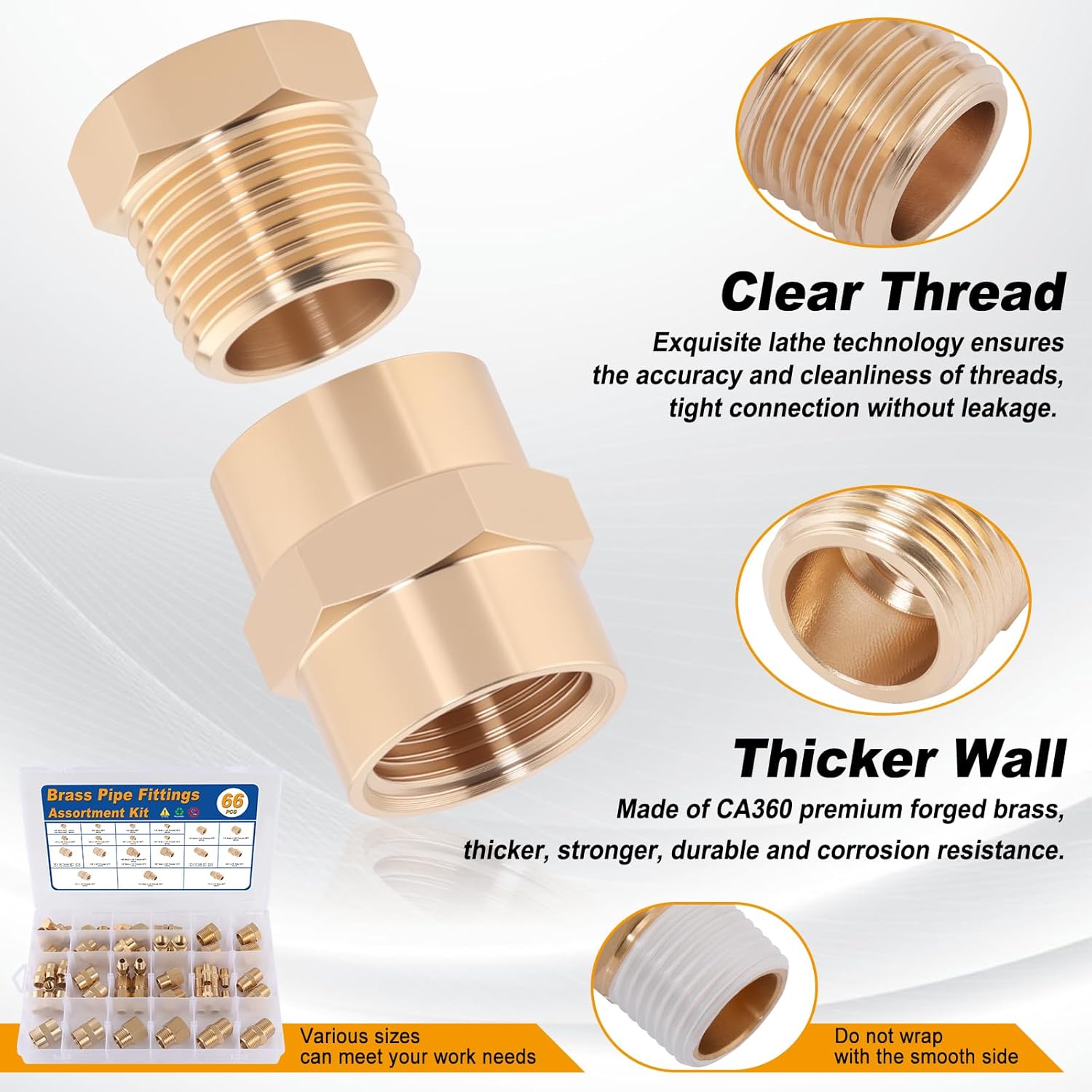 | Included Components | Brass Pipe Fittings Assortment Kit |