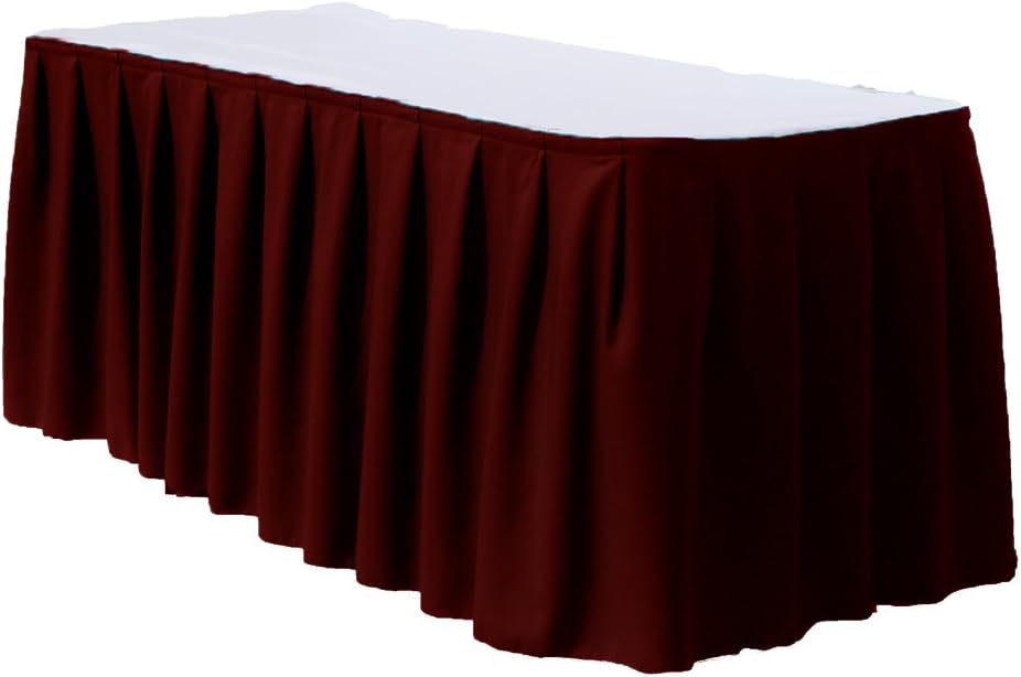 Table skirts can turn functional furniture into an integral part of the décor; they are a wonderful complement to emboss the concept of your meal. Definitely, these pieces will add flair and elegance to any special event. If you wish for a formal presentation, this is the option for you. Our 14 feet polyester table skirts are made for 4 feet rectangular tables with 29” drop on all sides. They are made of 100% polyester, designed for the need to be durable and can be laundered countless times. Table skirts are perfect to keep the balance in your room; they could frame a wonderful celebration, providing a classic and fresh sensation.