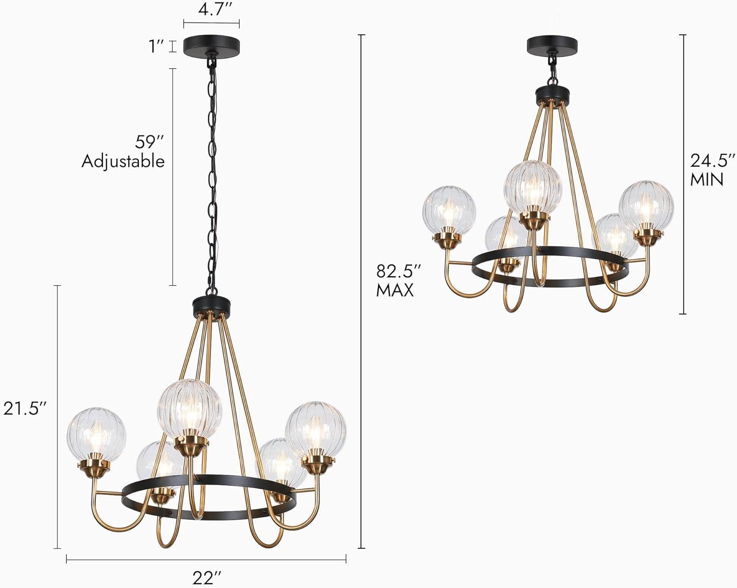 | Included Components | 5 Lights Black and Brass Chandelier, All Mounted Hardwares, Instruction Manual |