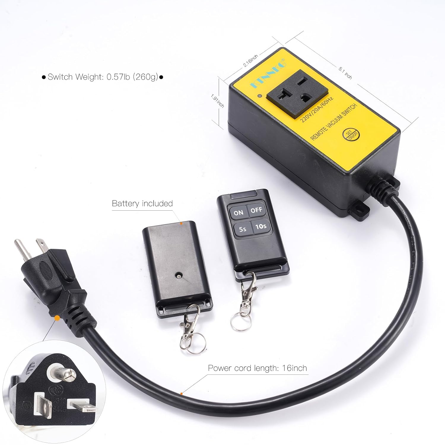 KTNNKG 220V & 120V Automatic Remote Vacuum Switch Set ,Plug-and-play setup, no wiring required; Remote-controlled convenience with strong signal strength;Delay-off function helps clean leftover dust efficiently;Compatible with most major woodworking tools;Save energy and extend vacuum lifespan