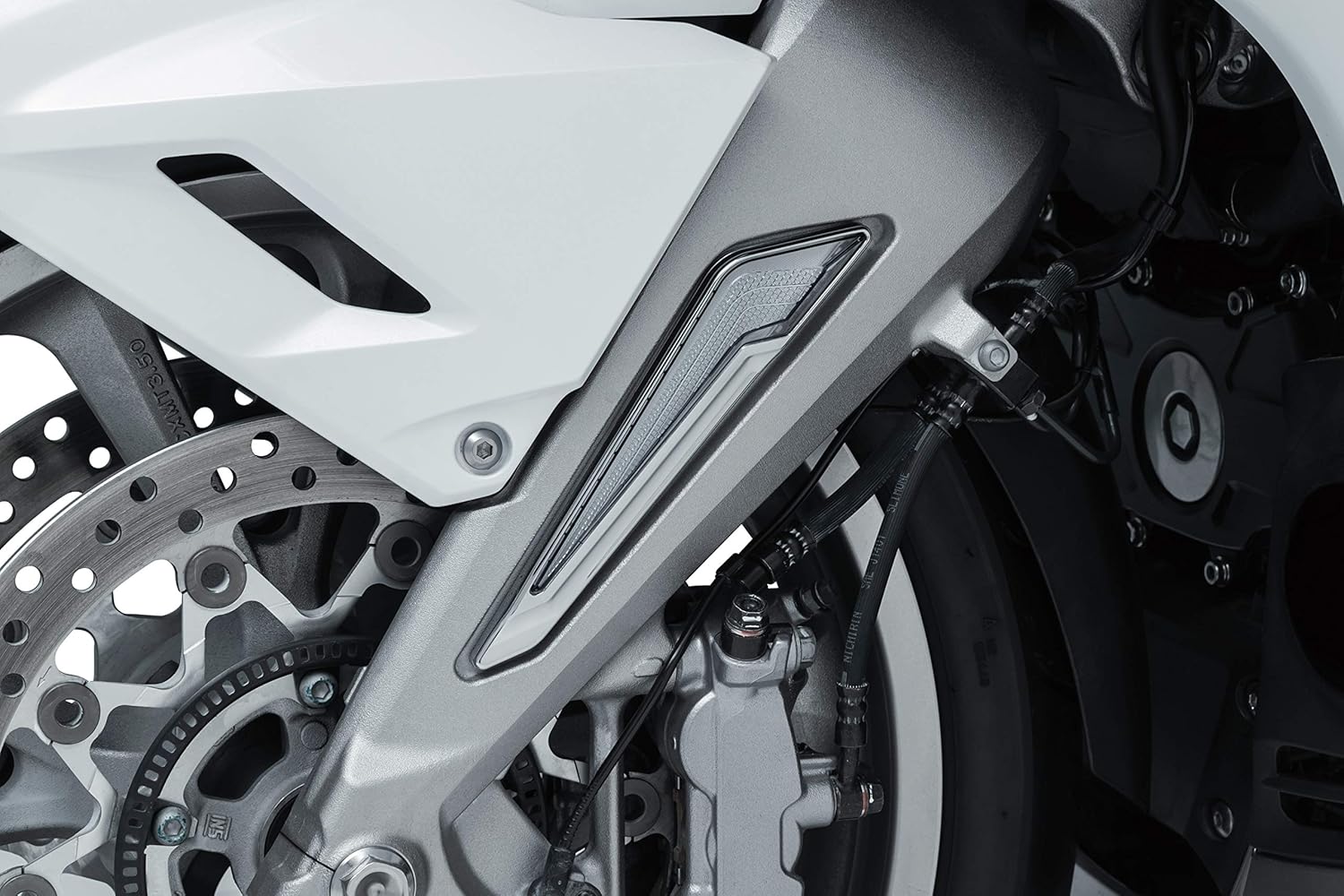 The Kuryakyn 3252 Omni LED fork inserts allow you to ditch the fork-mounted reflectors for something to get you noticed. Full-time white running lights convert to amber turn signals when actuated, with intense L. E. D. output that lights up the Gold Wing's lower front end. Includes (2) Omni fork lights, (12) 6" cable ties, (8) cord keepers, (2) M5 x . 8 flange lock nuts, and (2) alcohol pads; suggested for installation (not included): metric hex wrench set, phillips head screwdriver, metric socket set and ratchet, warm soapy water and a clean rag, blue loctite. The Kuryakyn 3252 Omni LED fork inserts are compatible with Honda Gold Wing models: '18-'20.