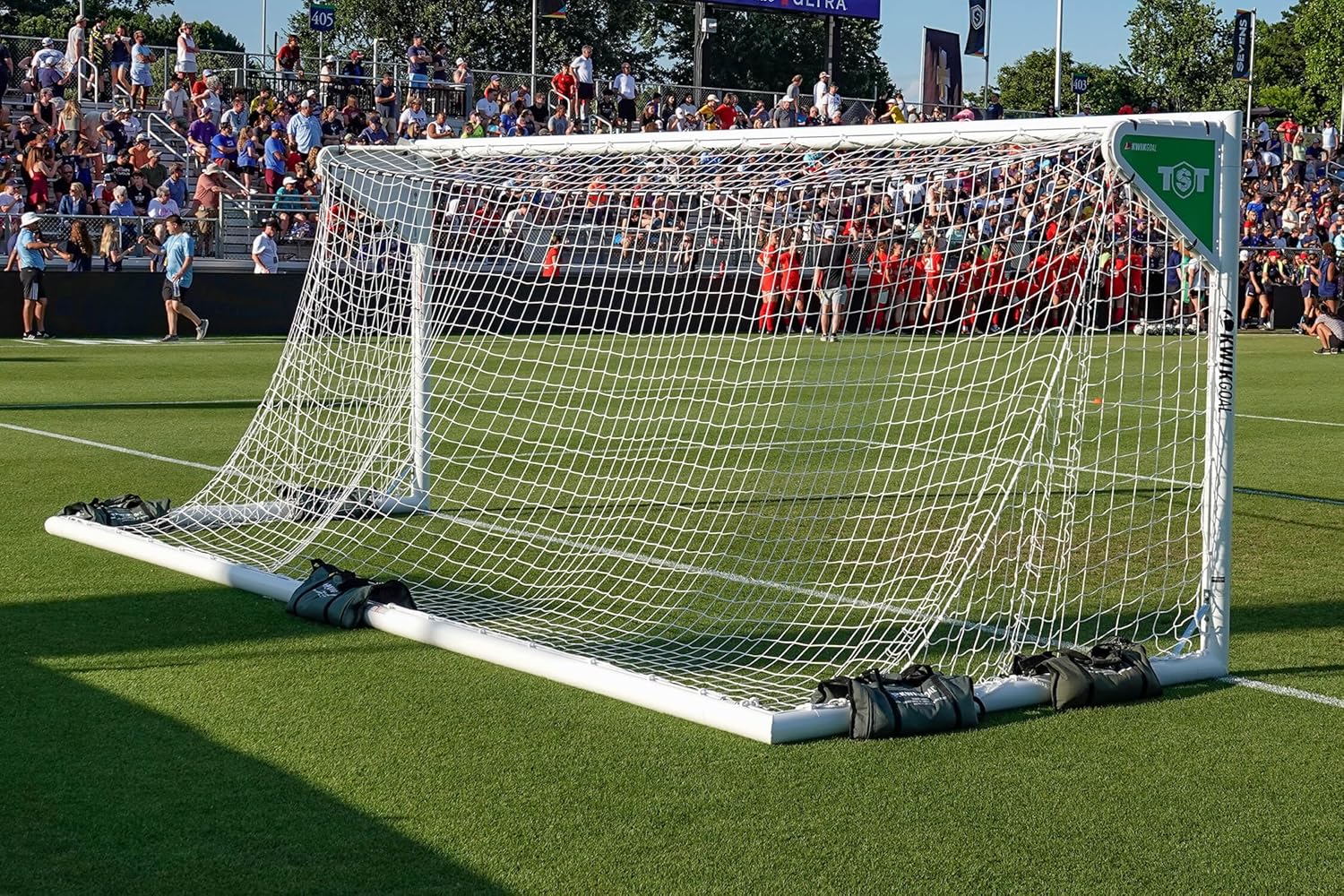 The Saddle Anchor Bag is made from a heavy-duty, woven polyester and is designed to anchor a soccer goal onto any type of surface, indoors or out. To properly install this anchor bag system simply: 1.) Pour sand (not included) into both sides of the bag2.) Secure sand in bag by completely zippering bag closed3.) Place the bags in the back corners of the base frame (this location allows for maximum counter balance)A key feature of this anchor bag is the amount of space between the handle and the bag – this space allows the net to be properly clipped into place without sacrificing any of the security the bags are intended to provide. Kwik Goal recommends six (6) of the Saddle Anchor Bags to properly anchor one full-sized 8’ x 24’ Kwik Goal soccer goal.