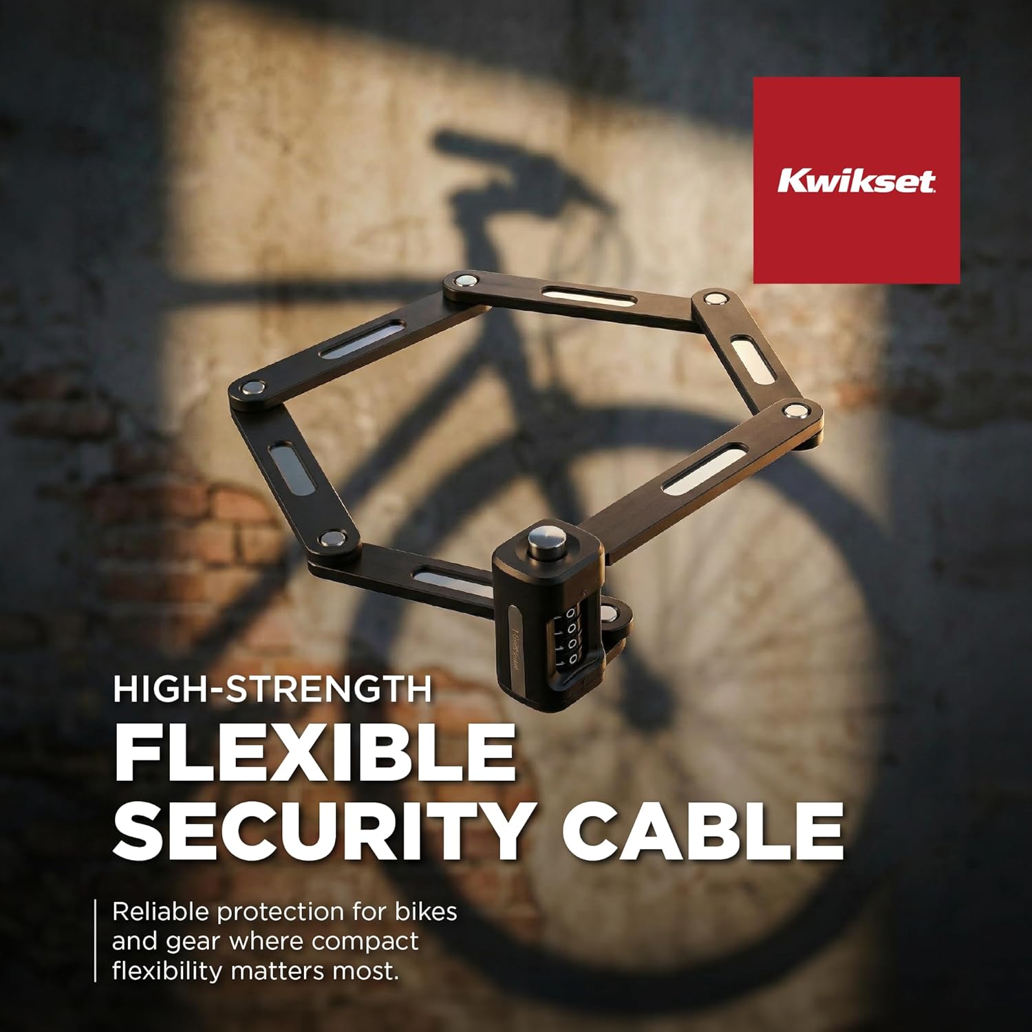 The Kwikset High Security Folding Bicycle Lock combines rigid link strength with a foldable design that packs down for easy everyday carry. Hardened steel links resist cutting and leveraging better than cable, while the folding form fits easily into bags, back pockets, and commuter setups. Available in keyed and combination options, with coated contact points to protect bike frames from scuffs on daily rides. Backed by a Limited Lifetime Warranty.