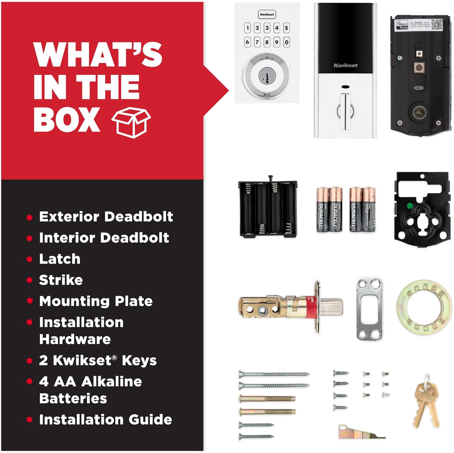 | Included Components | Keypad Deadbolt, Batteries, Keys, Installation Hardware |