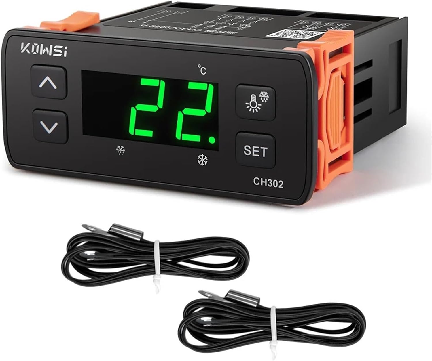 Thermostat ControllersAC110V-220V Thermostat Thermoregulator KWS-CH302 Digital Temperature Refrigerator Defrosting Alarm Control with Dual NTC SensorProduct features:1. and products.2. Made of materials, and practical.3. AI intelligent control, light control, frost freezing and other functions.4. Efficient and stable performance, long working life.5. Strong anti-interference, wide range of applications.Product parameters:Power supply voltage: AC110/220V 60/50HZTemperature display range: -50~100Temperature setting range: -30~100Working humidity range:5-90%RHTemperature resolution: 0.5Opening size: 71*28MM (mm)Overall dimension:83*75.8*35MM(mm)Note:1.Please allow 1-2cm errors due to manual measurement, make sure that you do not mind before you order.2.Due to the difference between different monitors, the picture may not reflect the actual color of the item.Package list:Temperature controller * 1Wiring *2