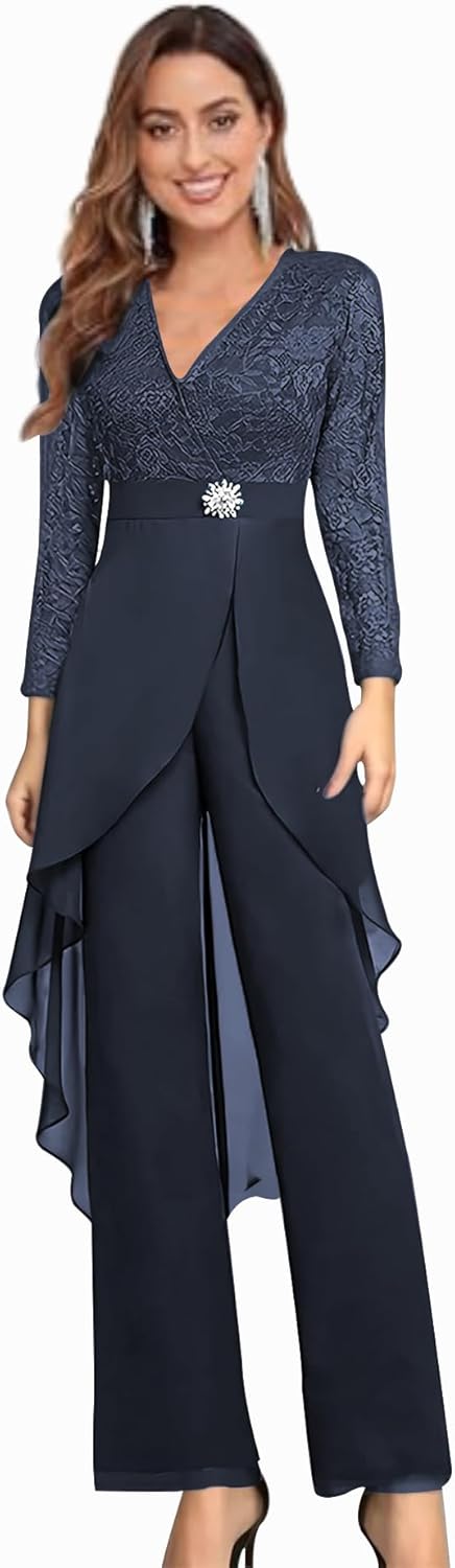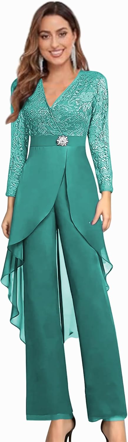 "Welcome to Our Store,Our Products Include Wedding Dress, Bridal Gowns, Bridesmaid Dress, Formal Evening Gowns, Mother Grandmother of The Bride Groom Dress, Homecoming Dress, Prom Dress, Cocktail Dress,Birthday Dress, Quinceanera Dress and Other High Quality Dress.We Aim to Make You In Every Special Day, Dazzling, Elegant Charming,From Here You Can Find Your Favorite Dresses. Features of This Mother of The Bride Pant Suits: Neckline: V-NeckFabric:ChiffonDecoration:Lace Sleeve: Long SleeveLength: LongSilhouette: Empire WaistBack Style: Zipper Customized Size: Please Select ""One Size"" In The Size Section At The Time Of Purchase. 1.Bust _____ Inch Or ___ Cm 2.Waist _____ Inch Or ___ Cm 3.Hips _____ Inch Or ___ Cm 4.Shoulder To Shoulder ____ Inch Or ___ Cm 5.Head To Floor(Without Shoes) ___ Inch Or ___ Cm 6.The Height Of Your High Heel Shoes: _____inch Or ___ Cm"