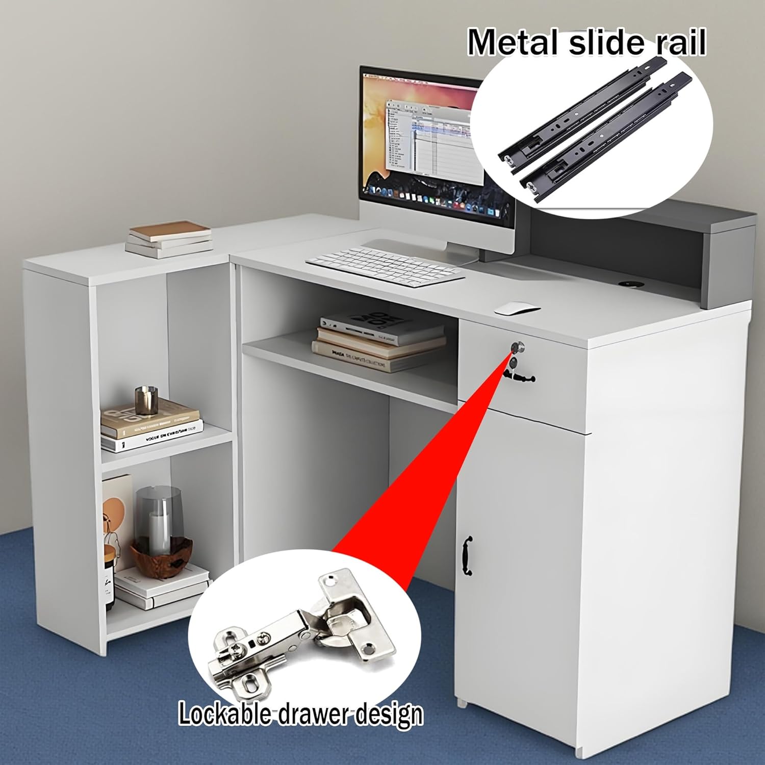 HOLGVE This L-Shaped Reception Counter For Sale Combines Modern Minimalist Design With Practical Functionality, Making It Perfect For Small Clothing Stores, Tea Shops, And Hair Salons. The Front Counter Desk Corner Design Effectively Utilizes Space While Providing A Spacious Desktop And Storage Area.The Retail Counter's Built-In Led Lights Offer Clear Illumination For The Cashier Area, Enhancing The Front Desk's Ambiance.Whether For Improving Store Image Or Optimizing The Workspace, This Counter Desk Is An Ideal Choice.Product Name:Reception Desk/Front Counter Desk/Retail Counter/ With Led LightProduct Material:High-Quality Thickened High-Density BoardMaterial: Engineered Wood, MDFStyle:Modern And SimpleIs Assembly Required:YesPackage Contents:Reception Desk X1, Product Size: (LxWxH)80x90x105cm/31.4"x35"x41.3", 100x90x105cm/39.3"x35"x41.3", 120x90x105cm/47.2"x35"x41.3", 140x90x105cm/55.1"x35"x41.3"1. Note: Due to the particularity of the furniture, there will be slight errors in the finished product, which is normal. The data is for reference only and must be based on the actual product. We hope for your understanding!2. While we display colors as accurately as possible, due to differences in computer monitors, colors may vary.