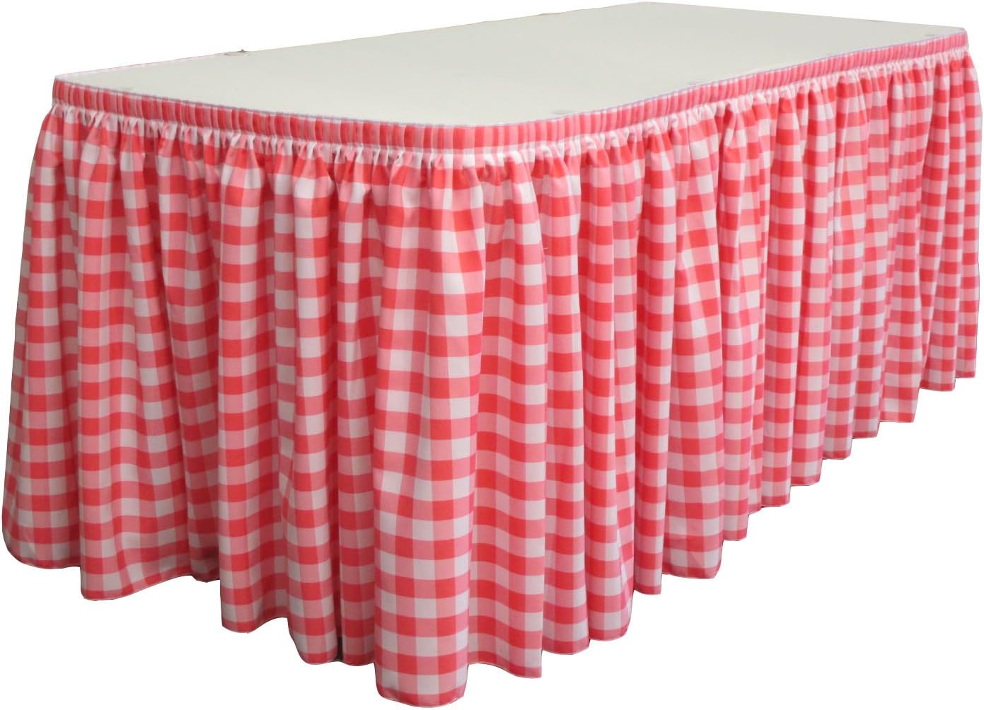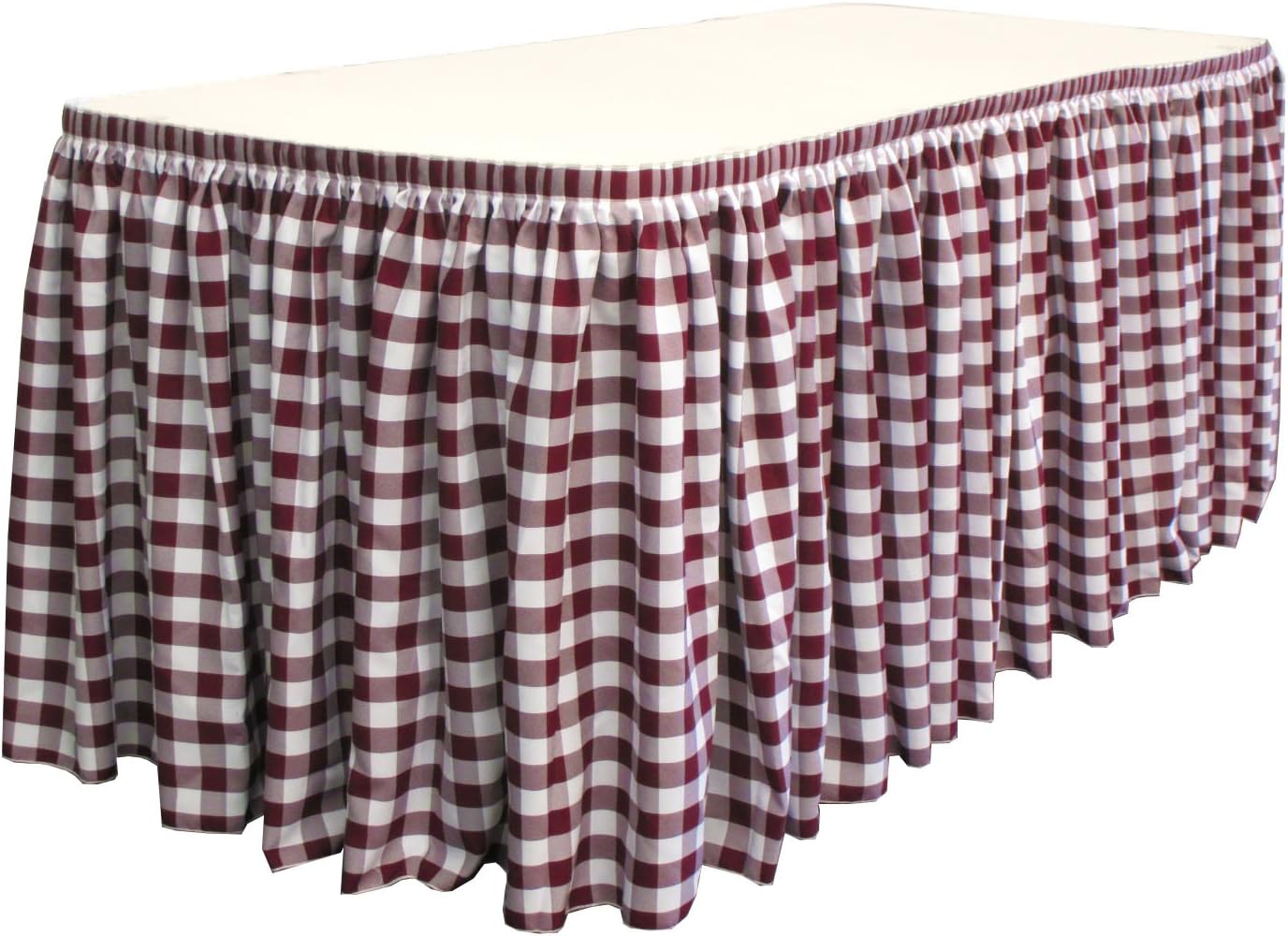 Our table skirts are made with the highest quality durable yarn dyed gingham checkered fabric and have been used by hotels and party venues for any event decoration for many years and now they are available to you by the original manufacturer. The skirt would cover 3 sides of a 6 ft. or 8 ft. long banquet table. Plastic clips are used on the table to attach the skirt to the table. This order comes with 10 large clips and additional clips may be purchased separately.