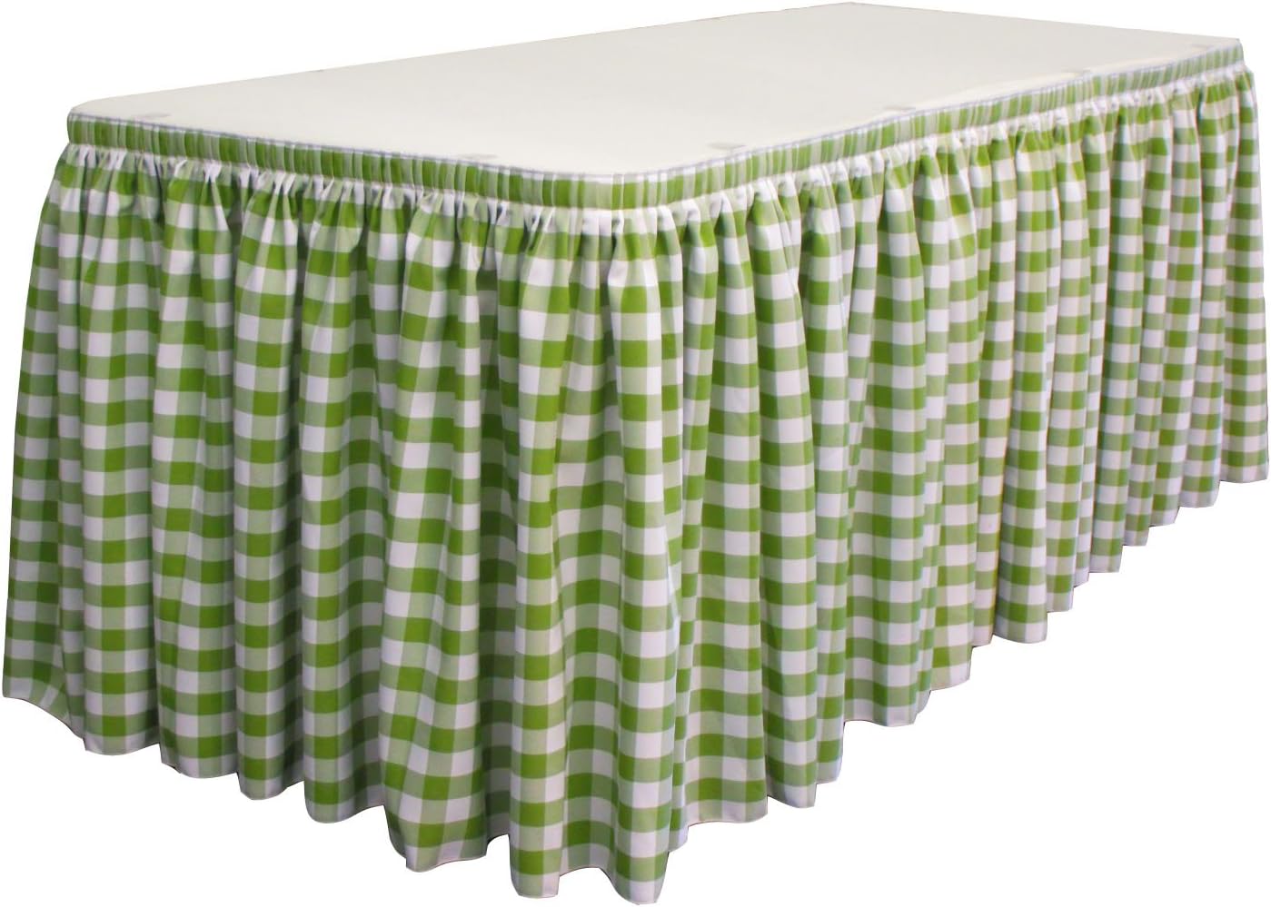 | Item Type Name | LA Linen Poly Checkered Table Skirt with 10 Large Clips, Green/White, 14' by 29" |