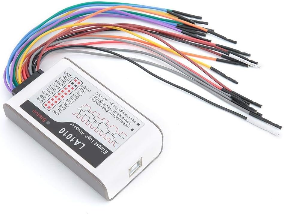 Specification: Item Type: Logic Analyzer Language: Chinese and English can be switched Input Channel: 16 Maximum Sampling Rate: 100m Measuring Bandwidth: 20 Meters Minimum Pulse Width Captured: 20 ns Maximum Sampling Depth: 10g / channel Input Voltage Range: -50~+50V Input Impedance: 220 KΩ, 12 pF Adjustable Threshold Voltage: -4~+4V, step: 0.01V Pulse Width Modulation Channel: 2 Pulse Width Modulation Frequency Range: 0.1~10mhz Pulse Width Modulation Frequency Adjustment Step: 10 ns Pulse Width Stepping: 10ns Pulse Width Modulation Output Voltage: +3.3V Pulse Width Modulation Output Impedance: 50Ω Standby Current: 100mAh Maximum Operating Current: 150mA Size: Approx. 95 x 55 x 23mm / 3.7 x 2.2 x 0.9in Supported Operating Systems: for Windows XP, for Vista, for Windows 7/8/10 (32/64 bit) Supported Standard Protocols: uart/rs-232/485, i2c, can, dmx512, hdmi-cec, i2s/pcm, jtag Package List:1 x Logic Analyzer2 x 9P Cable 1 x 2P Cable 20 x Test Hook1 x USB Cable1 x CD1 x Instruction Manual