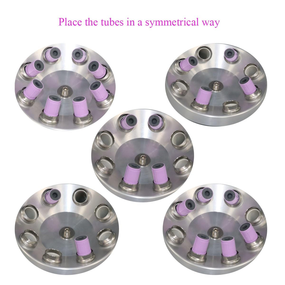 Notes: The rotor can only hold 10ml/15ml centrifuge tubes or 2ml/5ml/8ml/10ml vacuum collection tubes. Please place the tubes in a symmetrical way to reduce the vibration. Please kindly know that the centrifuge is driven by the brushless motor not the carbon brush, so the motor itself won't generate loud noise, but it will if the machine isn't placed steadily when running. Specifications: Type: Low Speed Centrifuge Power Supply: 110V - 240V Material of Rotor: Aluminum Alloy Capacity: 8 x 10ml/15ml centrifuge tubes or 8 x 2ml/5ml/8ml/10ml vacuum collection tubes Max speed: 4000r/min Max RCF: 1880xg Timing Range: 0 - 99min Speed Accuracy: ±10rpm Motor type: Brushless DC motor Noise: ≤55dBA Dimension: 235 x 240 x 180mm Weight: 6.1kg Package Included: 1 * Lab PRP Centrifuge 8 * 5ml Vacuum Collection Tubes 1 * English Manual