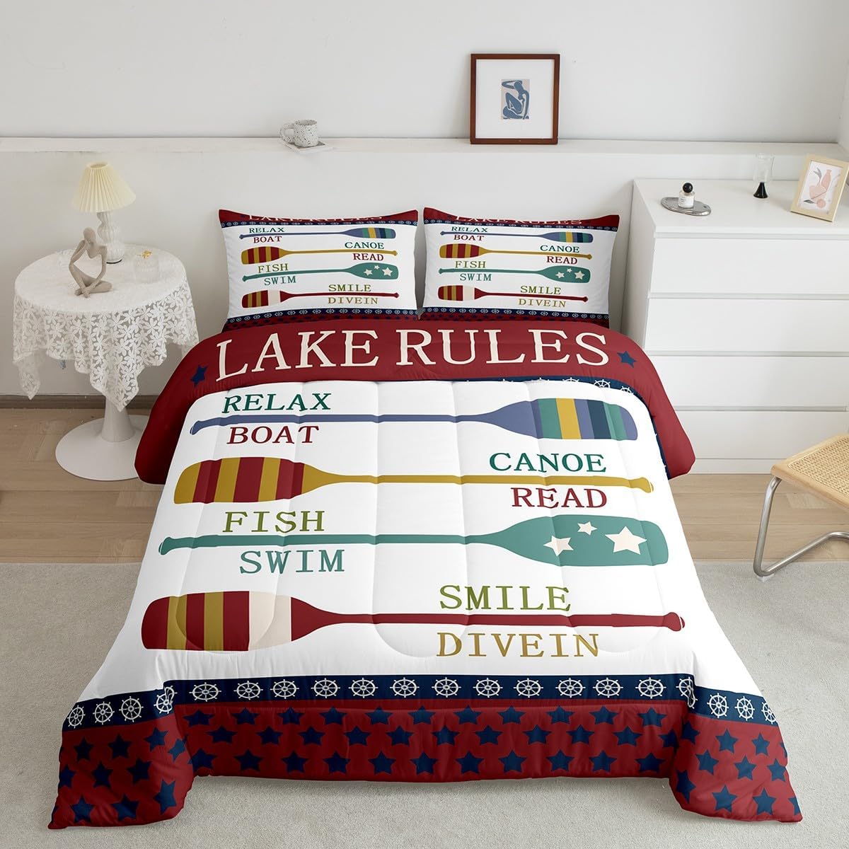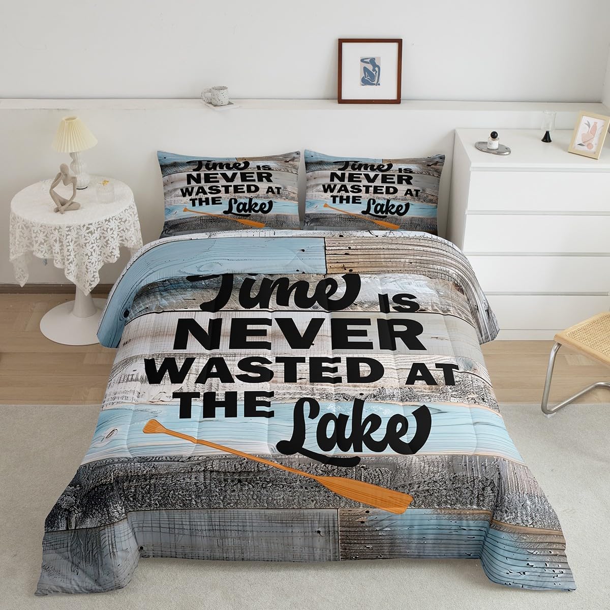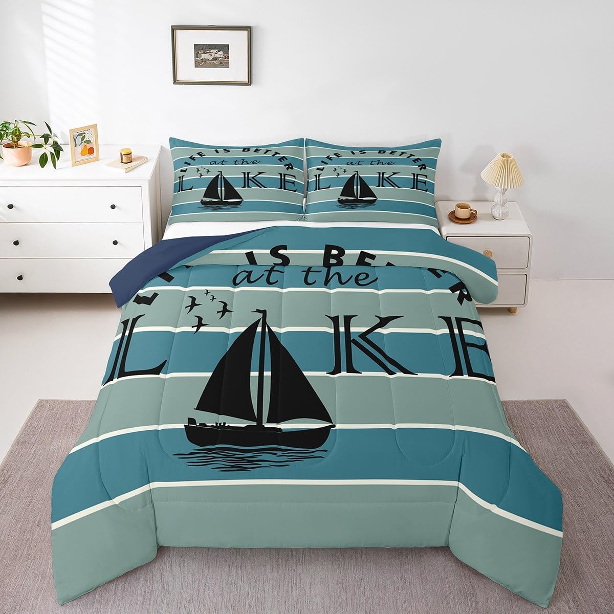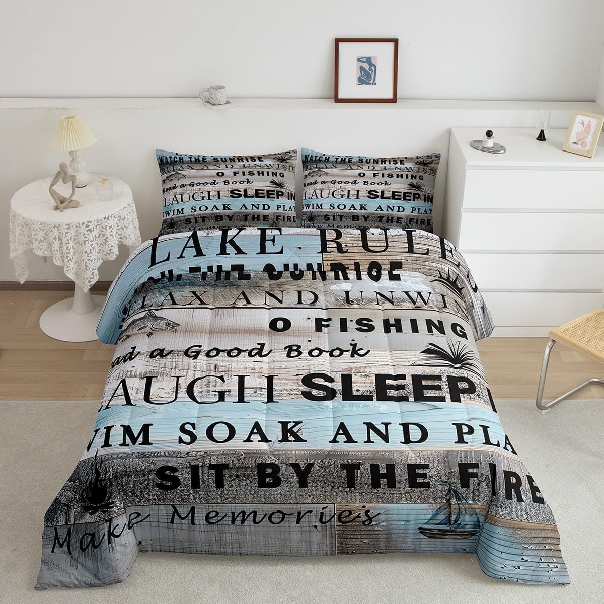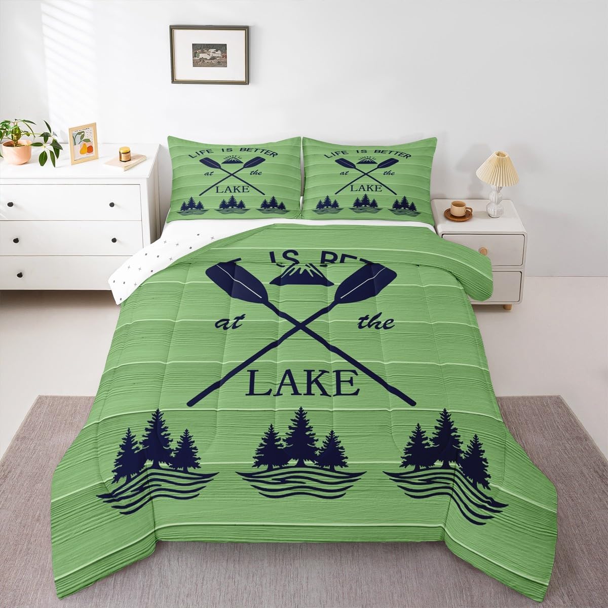Welcome to our store We have specialized in home textile for many years:We are contribute to provide good customer service and products Size Information Twin size: 1 Down Comforter 68"W x 90"L and 1 Quilted Pillowcase 30"W x 20"L Full size: 1 Down Comforter 79"W x 90"L and 2 Quilted Pillowcases 30"W x 20"L Queen size: 1 Down Comforter 90"W x 90"L and 2 Quilted Pillowcases 30"W x 20"L King size: 1 Down Comforter 104"W x 90"L and 2 Quilted Pillowcases 36"W x 20"L Versatility We have many kinds of styles for you to choose: You can easily find a product that suits the style of your room The item is not only good for your bedroom,guest room,living room or Rv,but also a great Present for holidays or anniversaries for people who you love Modern Design The luxury aesthetic comforter set is made by reactive printing and dyeing process:The pattern is clear, the color is lasting and bright, which will not fade after repeated washing Personalized As a manufacturer of digital printed home textiles,we follow current trends and bring you the latest and stylish home textile products The item will make the room decorated in exquisite taste Our Wish We sincerely hope you'll love the bed set