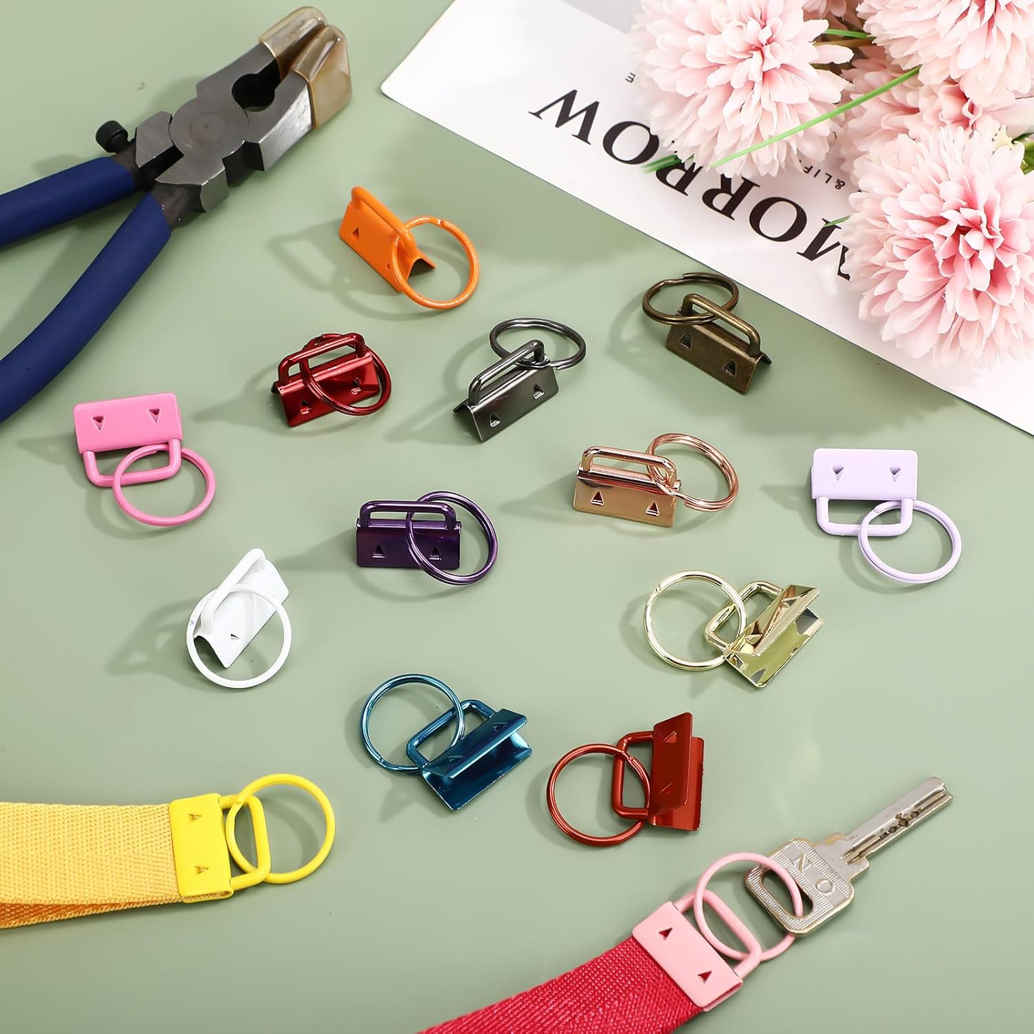 Features: Key Fob Hardware 1 Inch: the keychain fob hardware is made of heavy-duty metal alloy, with a key ring attached on the hoop which is convenient to add keys and charms on. The key chain fob hardware with key ring is 1 inch in width. Ideal size for making key lanyard and webbing wristlet keychains You can use the key fob for ribbons, handmade webbing, key lanyards, key fob wristlets, and more Specifications: Material: metal Color: multicolor Size: the width of the hardware: 2.5 cm / 1 inch Package includes: 100 x key fob hardwares Notes: Manual measurement, please allow slight errors on size. The color may exist a slight difference due to different screen displays.