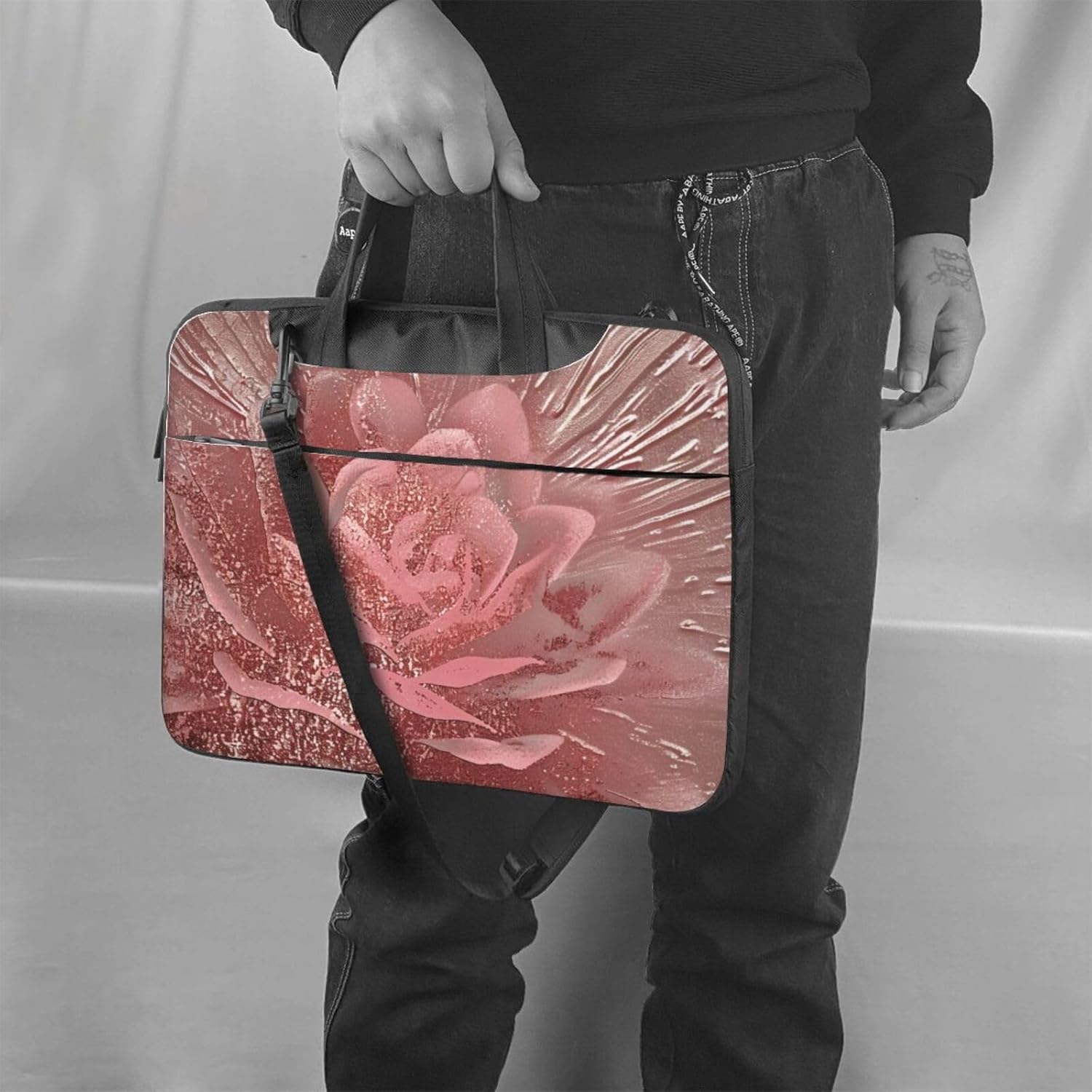 This ultra-thin portable laptop shoulder bag is designed for both men and women. It is made of high quality 600D polyester oxford fabric with a polyester foam filling layer and soft fabric lining, providing excellent shock absorption and protection for your laptop. The spacious interior provides a large capacity, so you can easily store your laptop, mouse, cables, power bank, pens and other accessories. The top double zippers ensure smooth sliding and convenient access. The removable padded shoulder strap with a length of 18 cm and a maximum length of 112 cm allows you to carry it comfortably on your shoulder or across the body. When not in use, the retractable top handle allows you to carry it alone or put it in your favorite bag. The bag also comes with a luggage strap on the back, making it suitable for business trips. With its fashionable design and special pattern, this laptop tote bag will make you different. The lining of the laptop bag for school office provides excellent protection from scratches. It is very suitable for carrying your laptop when going out. There are large pockets on both sides of the bag to hide the handles and hold the mouse, cables, power bank, pens and other accessories. To keep the bag in good condition, it is recommended to wash hand wash and avoid bleaching.