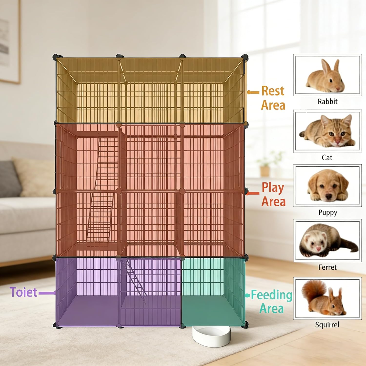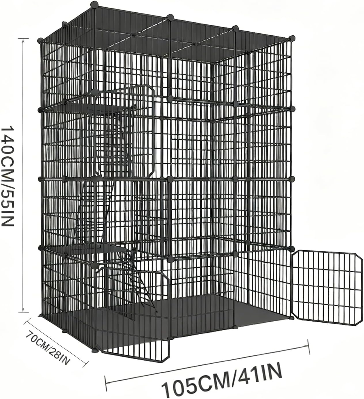 Create a cozy and secure haven for your feline pets with our Large 4-Tier Cat Cage Indoor! Designed specifically for cat lovers, this versatile cat enclosure provides ample space for your pet to explore, play, and relax. Constructed from sturdy, detachable metal wire, this cat cage offers a safe environment while allowing you to customize the setup to fit your home perfectly. The three spacious tiers make it good for multiple cats or small animals, ensuring they have plenty of room to stretch out and enjoy their own private space. Features include easy access doors for effortless interaction, along with a removable design that allows for quick assembly and disassembly. Whether you're looking for a temporary cat crate for travel or a permanent exercise place in your living room, this cat cage is the perfect solution for indoor pets. Give your furry companions the freedom in a secure setting with our Large 4-Tier Cat Cage Indoor – where comfort meets style in your very own cat enclosure! Suitable for kitties and small animals, it's an essential addition to any pet-friendly home. Order now and watch pets enjoy their new playground!