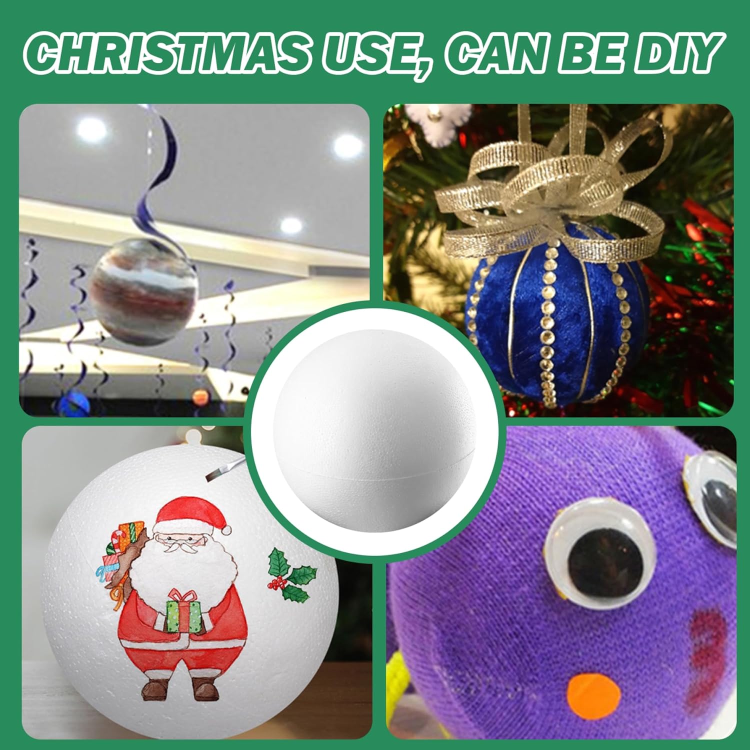 Description: These Large Foam Balls are the perfect addition to your DIY projects and decorations. Made with smooth styrofoam, they are easy to work with and perfect for both beginners and experienced crafters. Measuring at 8 inches, these Large Foam Balls are perfect for creating eye-catching and statement pieces. They are sure to make a bold impression in any setting. They can be enjoyed for many projects and occasions, making them a valuable addition to your crafting supplies. This set includes 4 Large Foam Balls, providing great value for your money. These Large Foam Balls are a versatile and valuable addition to your crafting supplies. Their smooth surface, large size, and durability make them perfect for various DIY projects and decorations. Whether you're creating arts and crafts, Christmas ornaments, wedding decorations, or home decor, these Large Foam Balls are sure to elevate your creations and make them stand out. Features:. Large Foam Ball. -Color: White. -Size: Diameter: about 20 cm/7.87 inch. Note: Manual measurement, please allow slight errors in size. The colors may exist slight difference due to different screens. Package Including 4 x Large Foam Ball