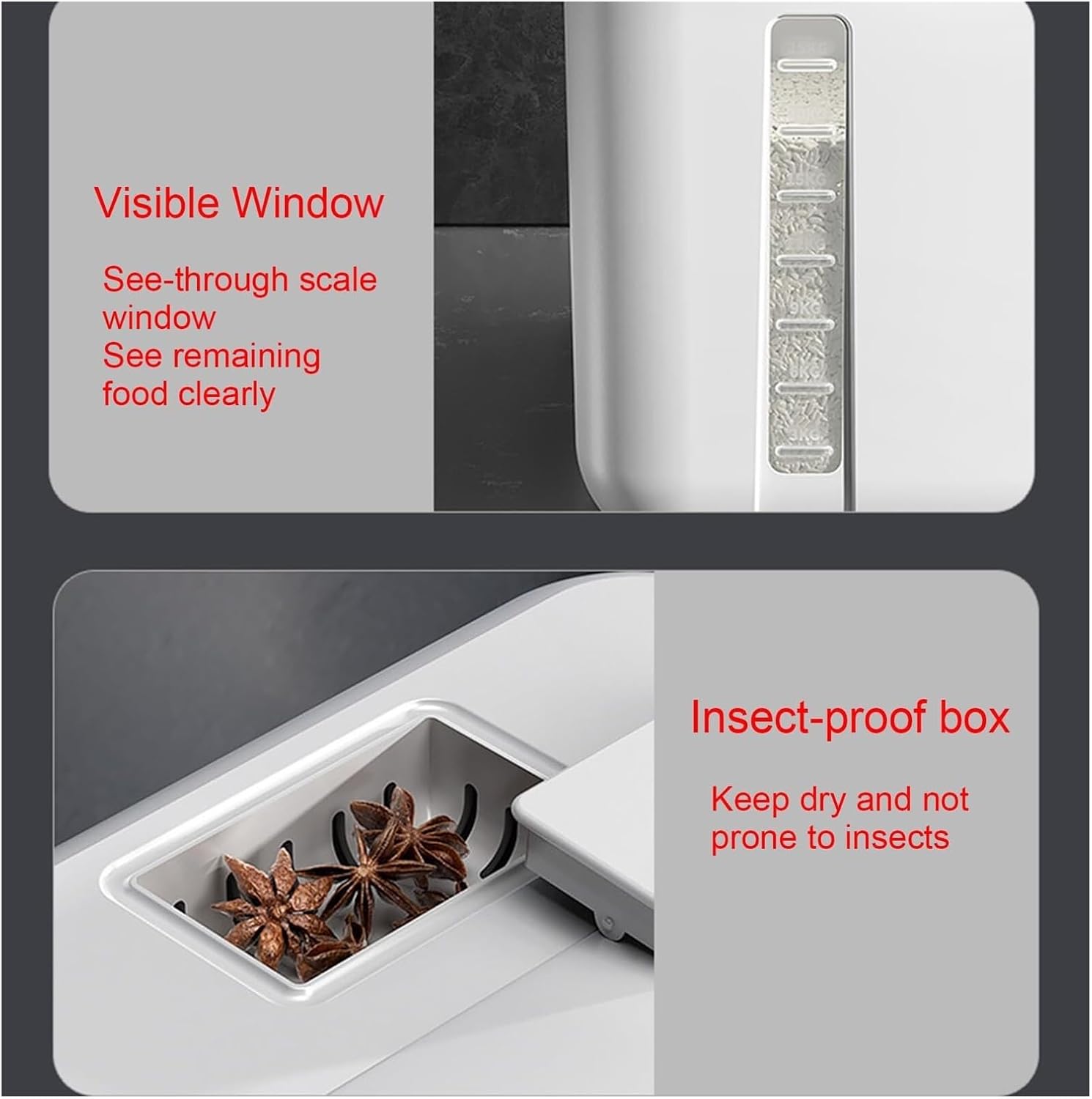 Keep your kitchen staples fresh and organized with this Large Capacity Rice Storage Container. Designed to store up to 10kg of rice, flour, or grains, this container is for families or individuals who need ample storage space.The damp-proof design ensures your food stays dry and from moisture, preserving its quality and preventing spoilage. Made from sturdy and durable plastic, this rice bucket is built to withstand daily use, offering long-lasting performance.The tight-sealing lid locks in freshness, maintaining the aroma and taste of your rice and grains. Its sleek and stylish design adds a touch of elegance to your kitchen, making it a practical and attractive storage solution.Specifications:Item Type: Rice ContainerMaterial: Premium PlasticCapacity: 10kgPackage Includes:1 x Rice ContainerUpgrade your kitchen storage with this reliable and stylish rice container, designed to keep your food fresh and your kitchen organized.