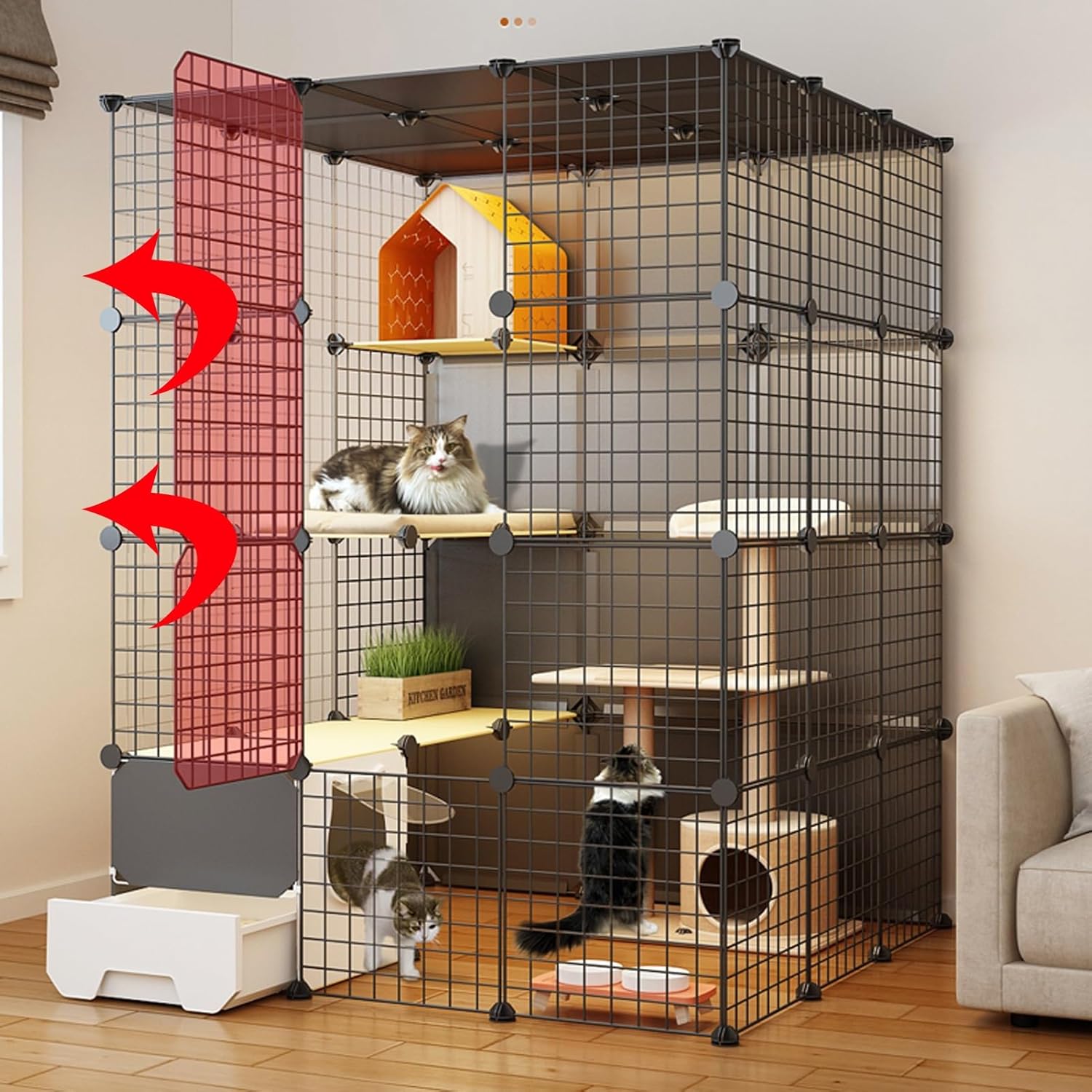 Introducing our sturdy and versatile cat cage, perfect for pet owners who want a safe and comfortable space for their furry friends. Made to provide ample space for your pets to roam in, this cage is made with sturdy materials that ensure durability and longevity.SpecificationsMaterial: Iron netColor: YellowStyle: ModernTarget Species: CatProcess: Baking, PaintingNumber of Tiers: 2/3/4Assembly Required: YesMount Type: Floor StandingNumber of Cats Accommodated: 1-3Product Size: 28.7*18.5*42.9"/73*47*109cm , 42.9*18.5*42.9"/109*47*109cm , 28.7*36.6*42.9"/73*93*109cm , 42.9*36.6*42.9"/109*93*109cm , A-57*36.6*57.1"/145*93*145cm , 57.1*36.6*42.9"/145*93*109cm , B-57*36.6*57.1"/145*93*145cm , 42.9*55.1*57.1"/109*140*145cm , 57.1*55.1*57.1"/145*140*145cmPackage List:Cat cage *1Cat litter box *1Cat litter scoop *1Fixed strapGavel *1Funny cat stick *1Please note:1. While we display the most accurate color possible, there is likely tobe variations in color due to differences in computer monitors.2. Manual measurement, the size of the product there will be 1-3 cm error.3. The cat supplies in the photo are for display and reference purposes only (not for sale).