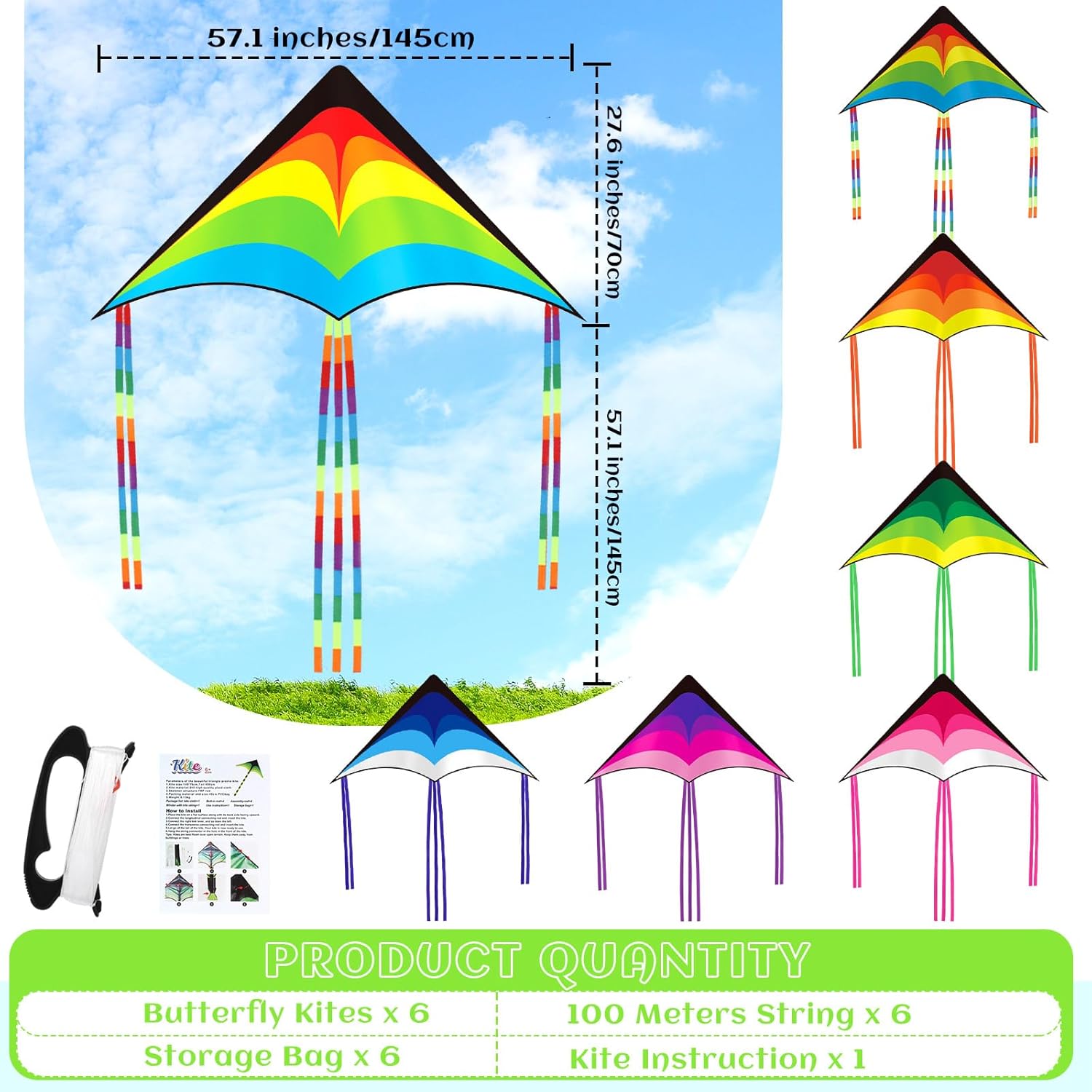 | Included Components | 6 x Large kites |