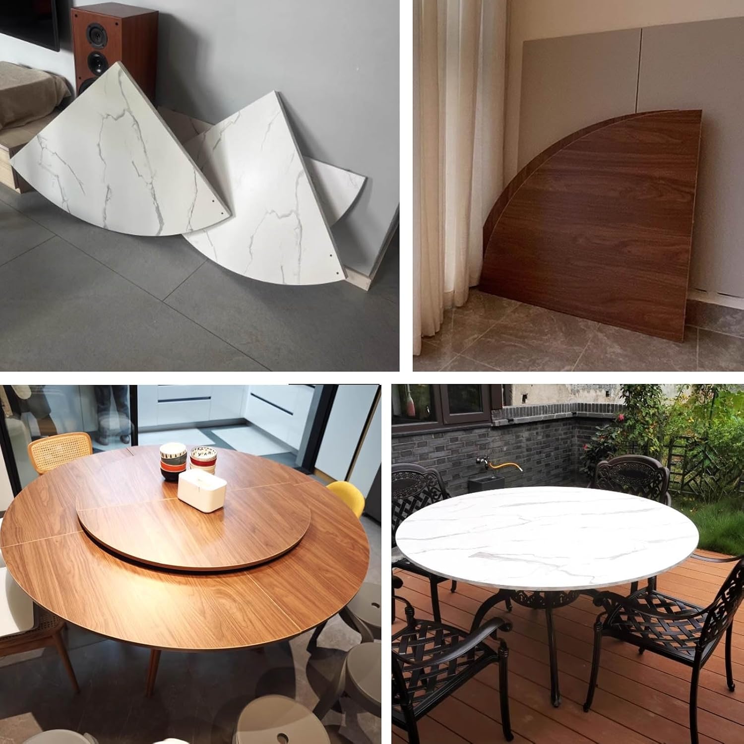 This foldable wooden round table adopts space-saving folding design, which can be easily operated by a single person, and is suitable for daily scenes such as handicrafts, office, etc. It can quickly expand the tabletop space when partying, and the fixed buckle at the bottom guarantees the stability, and it is easy to install and convenient to store, so as to make the home environment always remain open and tidy.Product SpecificationName: Foldable Round Table TopMaterial: solid woodStyle: four-point foldingProduct features: waterproof and smooth surface, easy to wipe.Easily foldable, easy to store and save space.Tabletop is stable and durable, can withstand heavy loads.Package Includes:1x Round Folding Table PlatePLEASE NOTEDue to different light and screen settings, item color may vary slightly from the picture.
