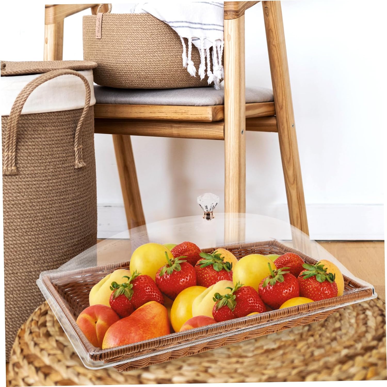 Package List 1 x basket 1 x lid Characteristics - Size: 41.60X26.00X18.50cm/16.35X10.22X7.27in imitation rattan basket -Product Info:Food fresh-keeping basket -Material:PP, acrylic living room tabletop fruit basket - This bread basket is easy to move and place, also comes with a lid for protecting food inside, convenient. household bread basket - The basket is designed to be used in a variety of settings and situations, making it a versatile and practical snack basket. - Food Basket - The stylish exterior and sleek appearance of this food basket makes suitable for different home decor styles food display baskets. - Making it a perfect choice for parties, events, showcasing delicious food items on a tabletop or countertop serving basket. - The construction of this food basket is achieved through its sturdy material and fine craftsmanship reusable food basket.Goods Descriptionserving basket The basket can be used to hold fruit, vegetables, bread, snacks, dried fruit and other sundries, widely used.bread serving baskets Sturdy material, flexibility and excellent durability, the storage basket is easy to use, for .fruit picking basket Multi-functional and practical, suitable for dinning room, kitchen, bathroom, bedroom and living room, etc