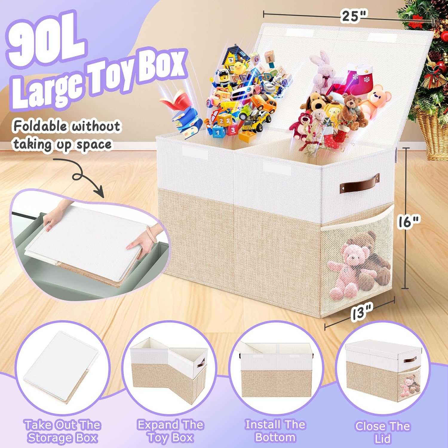 Large Toy Storage Box with Lid Divider, Sturdy Collapsible Toys Organizer Bins Chests Baskets for Kids Boys Girls, Nursery, Bedroom, Living Room, Playroom, Closet