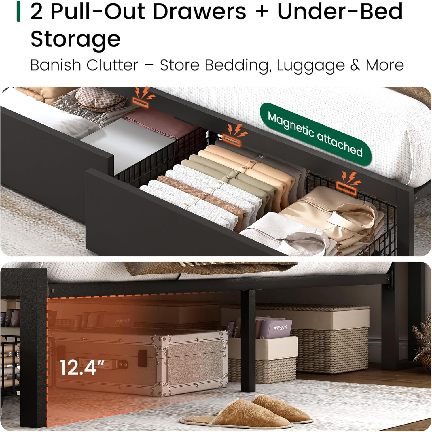 | Included Components | Charing Station, Drawer, LED Lighting, Storage Headboard |