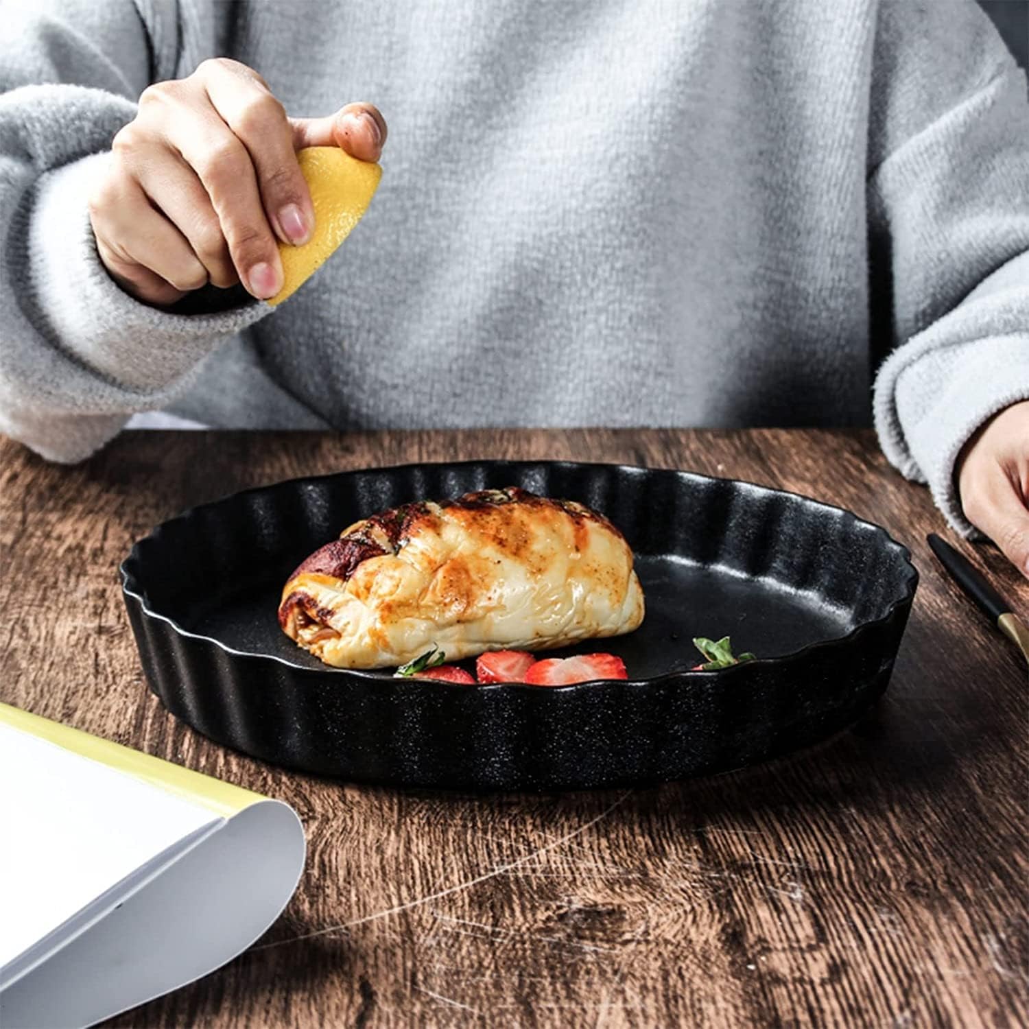 Material: Ceramic Use: microwave oven, oven, dishwasher, disinfection cabinet can be used with confidence Product features: Professional materials make your soup bowls safer to use. Lead-free and no-toxic. The baking dish with handles are sturdy. Easy to go from oven or microwave to the table. You can easily wash by hand or pop it in Dishwasher. If the product you received has any damage, defect, or any dissatisfaction, please feel free to email us through Amazon. We will solve the problem for you in a timely manner. The package contains: baking dish × 1
