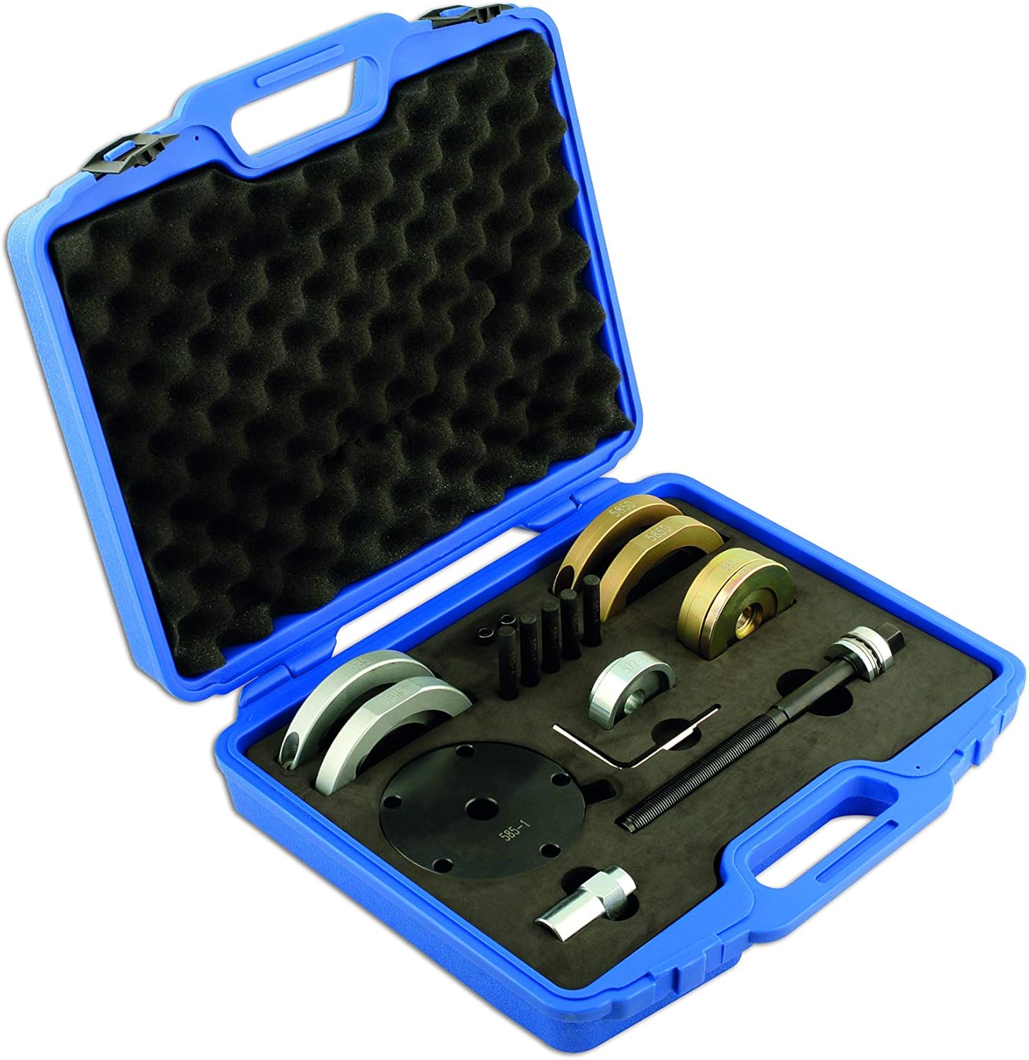 Product Description Generation II (GEN2) type wheel bearings, consist of a combined bearing and drive flange (hub), which cannot be separated, and therefore require special tools for both removal and fitting of new bearings.The Laser Tools range, consists of a number of individually sized kits, along with upgrade kits to allow for expansion of applications of different sized bearings, without always having to purchase complete new kits for each bearing size. By using clamshells and force plates/pins, the tool ensures that the load of insertion is taken only on the outer race of the bearing. The kits are also designed to allow for extraction of the relevant bearing, without removing the ABS Sensor. A British tool company based in Warwickshire, United Kingdom. Laser Tools draws on years of experience to introduce quality products which offer real value for money. All our products are responsibly sourced both from trusted ethical partners across the world PLUS (uniquely as an automotive tool brand) our own manufacturing base in the UK. Combining our British manufacturing, our years of experience and vast expertise in the automotive sector helps us achieve our aim of bringing high quality tool solutions first to market and being No.1 choice for many professional mechanics. Set Contains: Gen 2 Wheel Bearing Kit and Instructions
