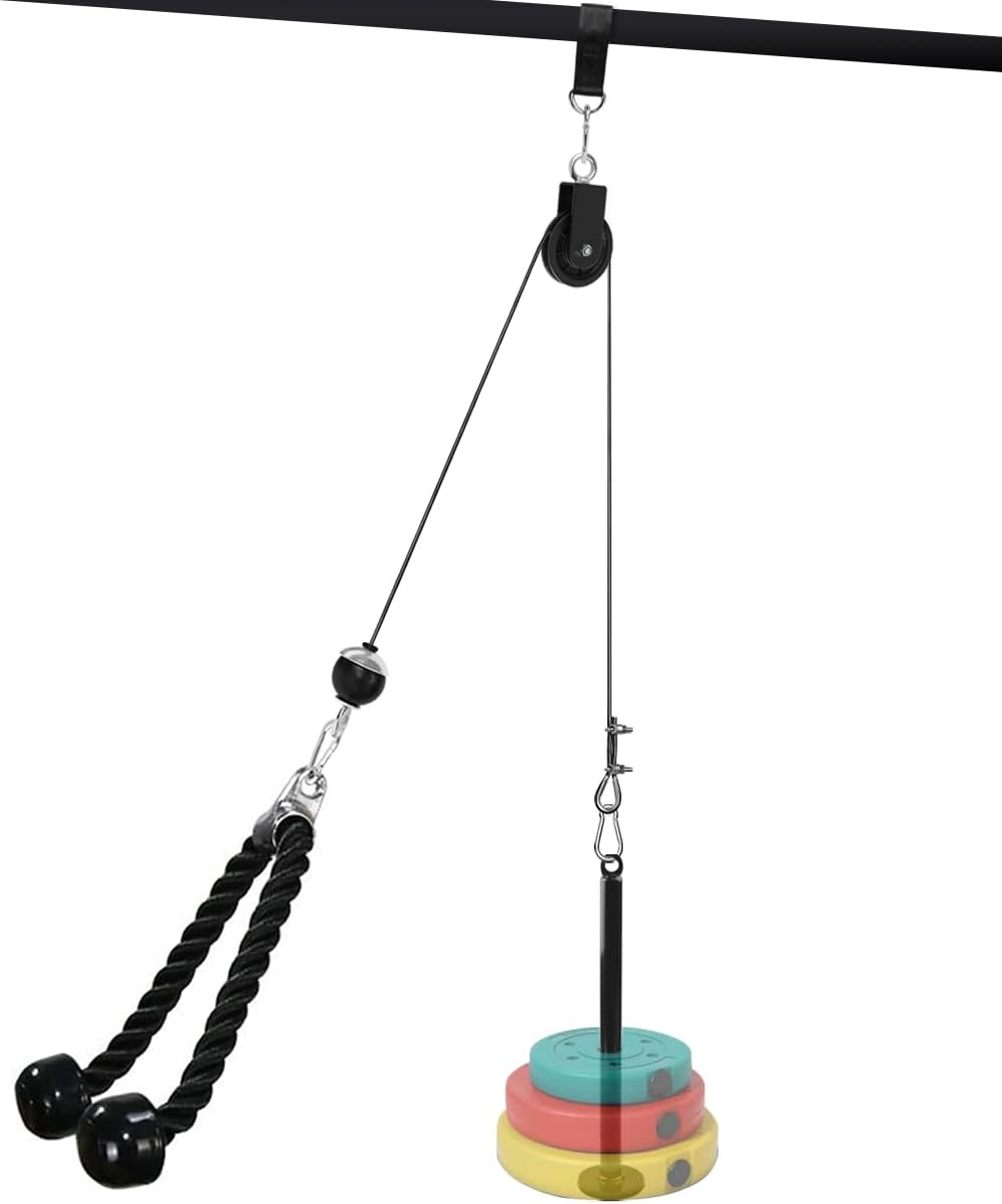 | Included Components | 1x Upgrade Loading Pin, 1x Red Swivel Pulley, 1x Nylon Tricep Rope, 1x Red Gym Steel Cable, 1x Cable Loop, 2x Security Buckles, 1x Tool, 1x Hanging Strap, 3x Carabiners |
