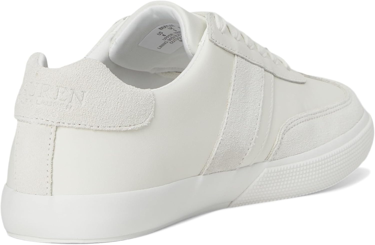 The Lauren Ralph Lauren Braylee Leather & Suede Sneakers blend premium craftsmanship with modern versatility, making them your go-to pair for effortless style. Crafted with a sumptuous leather-and-suede upper and a smooth leather insole, these sneakers offer a sleek yet plush feel with every step. The breathable polyester lining keeps you fresh, while the durable rubber outsole and vulcanized construction deliver long-lasting wear wherever your day takes you. An exclusive grooved foam footbed is engineered to evenly distribute weight, giving you cloudlike comfort from morning errands to evening strolls. Finished with a lace-up closure for a secure fit and a signature "Lauren Ralph Lauren" debossed logo at the back, the Braylee sneaker is your perfect blend of comfort, class, and iconic style.