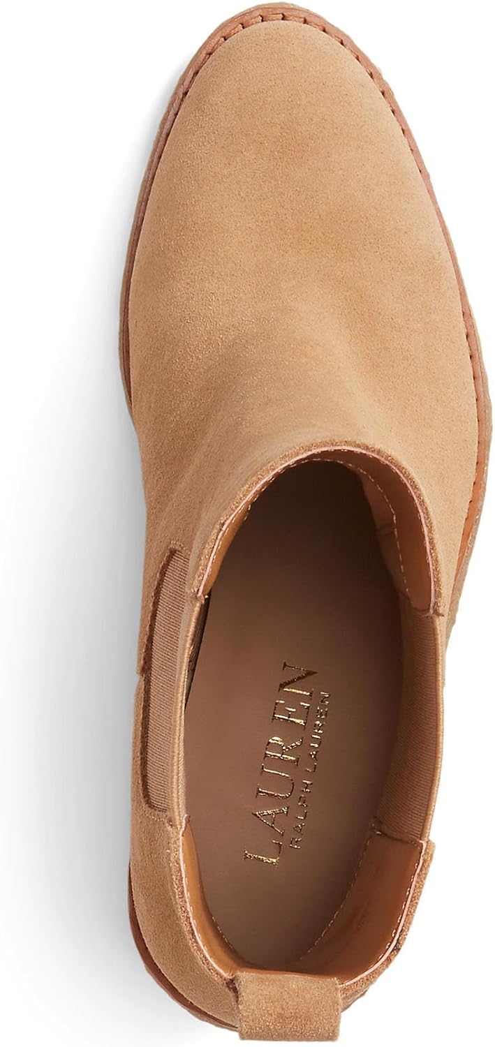 Reimagining the quintessential Chelsea boot, the Marianna is crafted with velvety-soft suede enhanced with water-repellent properties and features a chunky textured heel and elasticized side gores for a bold look. Accented with Lauren’s signature metal logo, it’s designed with a padded footbed for a style that’s as comfortable as it is chic.