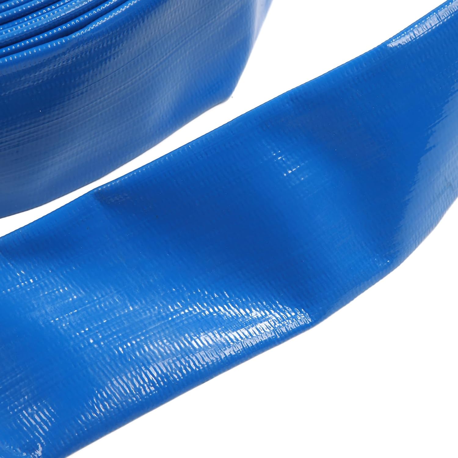 1. Flexible PVC Material: The pump discharge hose is made of flexible PVC material and woven with high tensile strength polyester yarn, which can prevent leakage and tearing and is durable. It is also to oil, fats, acids, and many chemicals. 2. No More Leakage: The hose is formed by an extruder and reinforced with polyester wire, and the joint is filled with sealant. The brass rotating nut has a black rubber inside, which can effectively prevent water leakage and explosion. 3. Easy Connection: The pool backwash hose can be easily connected by matching the same size and directly screwing it onto the pump threaded outlet. 4. Wide Application: Very suitable for draining swimming pools, backwashing pool filters, sewage pumps, sewage pumps, garbage pumps, swimming pool drainage pipes, and sand filter pumps. This hose can adapt to most outdoor conditions and all seasons. 5. Standard Size: Designed to have 51mm thread, the lay flat hose can also withstand high water pressure, ensuring stable working performance. Specification: Item Type: Lay Flat Hose Material: PVC Color: Blue Length: Approx. 30m / 98.43ft PackageList: 1 xLay Flat Hose
