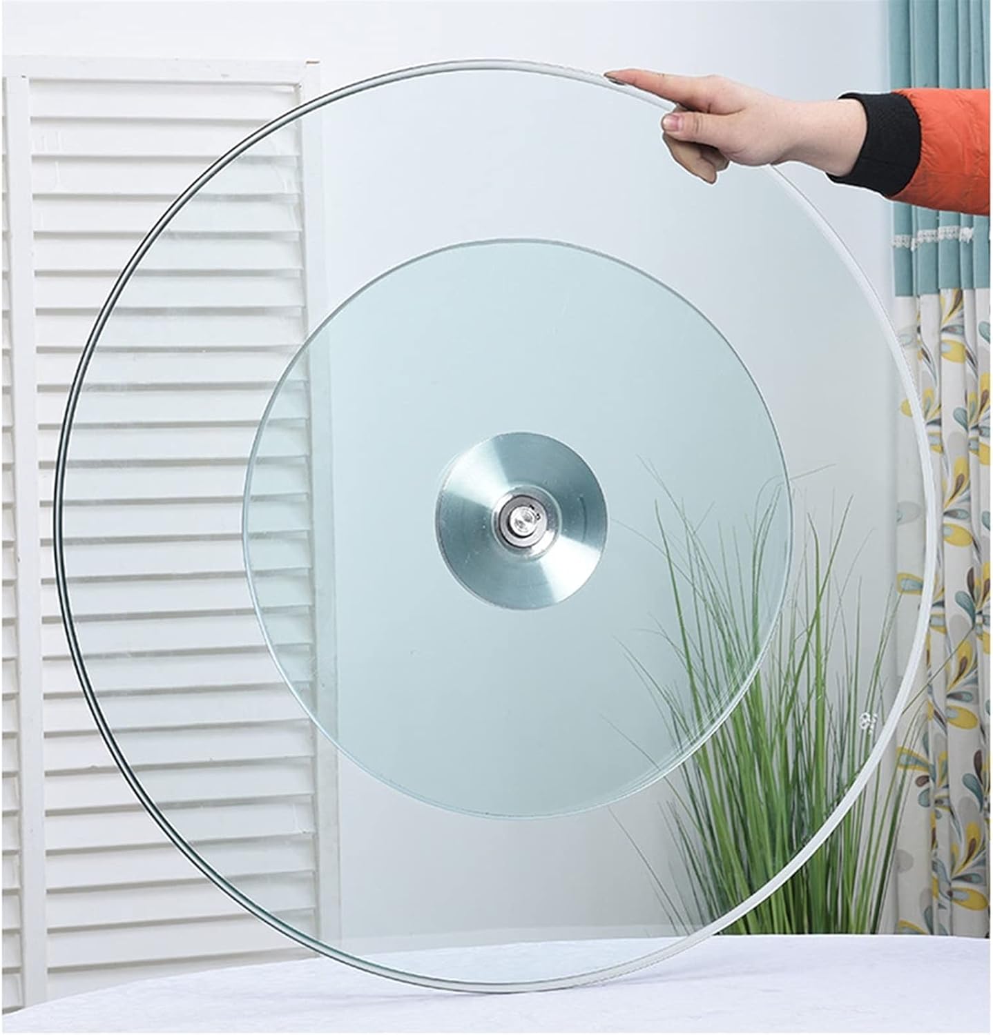 Vicareer glass Lazy Susan is an essential piece of kitchenware to enhance dining at home. The strong aluminium core ensures smooth swivel motion whilst the attractive design and quality construction makes it a wonderful addition to any home. convenient swivel design,Ideal for use in the kitchen, dining room or even in the games room.Specifications:Product Name: Kitchen Lazy Susan turntableMaterial: Thickened tempered glass/Aluminum baseShape: RoundColor: Transparent Silver Size: 60cm/23.6in , 70cm/27.6in , 80cm/31.5in , 85cm/33.5in , 90cm/35.4in , 100cm/39.4in , 110cm/43.3in , 120cm/47.2inThickness: 10mmFeatures: Environmentally friendly material, high temperature resistance, aluminum alloy, 360° flexible rotation, anti-side deviation, strong load-bearing, non-slip and wear-resistant, high strength, easy to care.