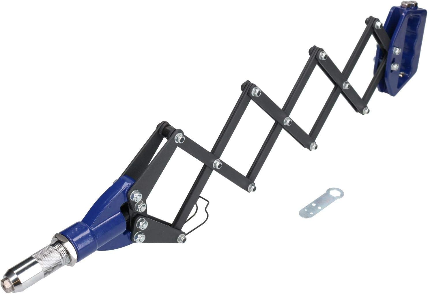 This heavy duty tool makes pulling pop rivets easy, simply push the handle to operate. Pulls pop rivets 2.4mm, 3.2mm, 4mm, 4.8mm and 6.4mm. Core pulling riveting for materials such as aluminium / steel etc... Pulls steel rivets up to 4.8mm and aluminium up to 6.4mm. Pulling force 9000N. Working stroke 10mm. Includes different size nozzles (stored in handle).