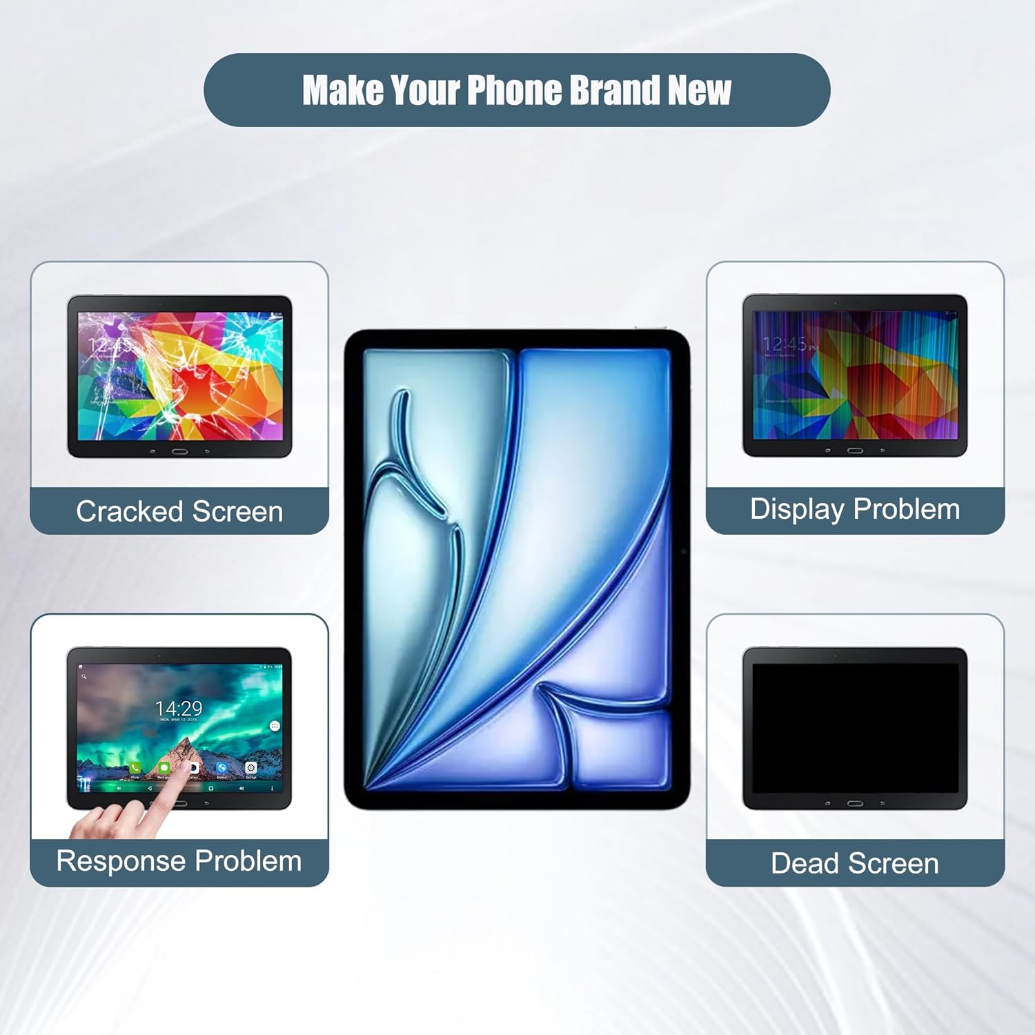 Item SpecsType:LCDGlass:LCDResolution:1640x2360pixelsPackaging: 1 x LCD,1 x toolsCompatible withiPad Air 11 (2024) M2 (iPad Air 6 6th Gen 11") A2902 A2903 A2904A few tips for intallation1.When you receive the screen, please check if it is in good condition. If the item is damaged on arrival, please let us know by sending us a message.2.Please carefully remove your cracked screen and connect the new screen to the mainboard,then turn on your phone to see if it works before installation. A hair drier will help you to remove your cracked screen.3. The cable on the screen is very fragile, do not bend it hard.4.There're lots of instruction videos on internet, you can watch some videos to learn how to fix it or find a professional technician to help with you.How to protect your cellphone screen1.Do not put your phone together with keys, coins or other metalworks, because these things may scratch your phone screen.2. Use a screen protector to protect your screen.3.Keep your phone away from Magnetic materials, because the magnetic materials may cause dead touch if you put them together for a long time.4.Do not use a low quality third-party charger adapter to charge your phone, it will also damage your screen.5.Do not put it close to you when you sleep, because your careless hit may let it drop on the floor and the screen may got broken.Contact usIf you have any questions or any issues when using our product, please send us a messsage, we will answer you within 24hrs. Thank you for your time.