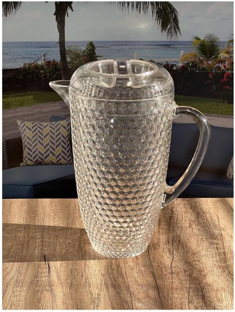 We take great pride in introducing our BPA-free diamond cut water pitcher with lid, meticulously engineered to embody both resilience and convenience. Crafted with a robust, break-resistant design, this juice pitcher seamlessly caters to indoor and outdoor usage, offering a hassle-free experience while boasting dishwasher-safe properties for effortless maintenance. Boasting a generous 2.5-quart capacity, this drink pitcher stands as a testament to its sturdy construction, capable of meeting all your beverage requirements with unparalleled efficiency. Its sleek and sophisticated design not only enhances its practicality but also adds an element of refined style to any kitchen or home bar, making it an essential addition to your culinary arsenal. Don't miss the opportunity to elevate your beverage service - invest in this indispensable plastic pitcher today, and embrace a new era of serving convenience, redefining your everyday pitcher experience with a touch of elegance. Brought to you by Continents Apart.